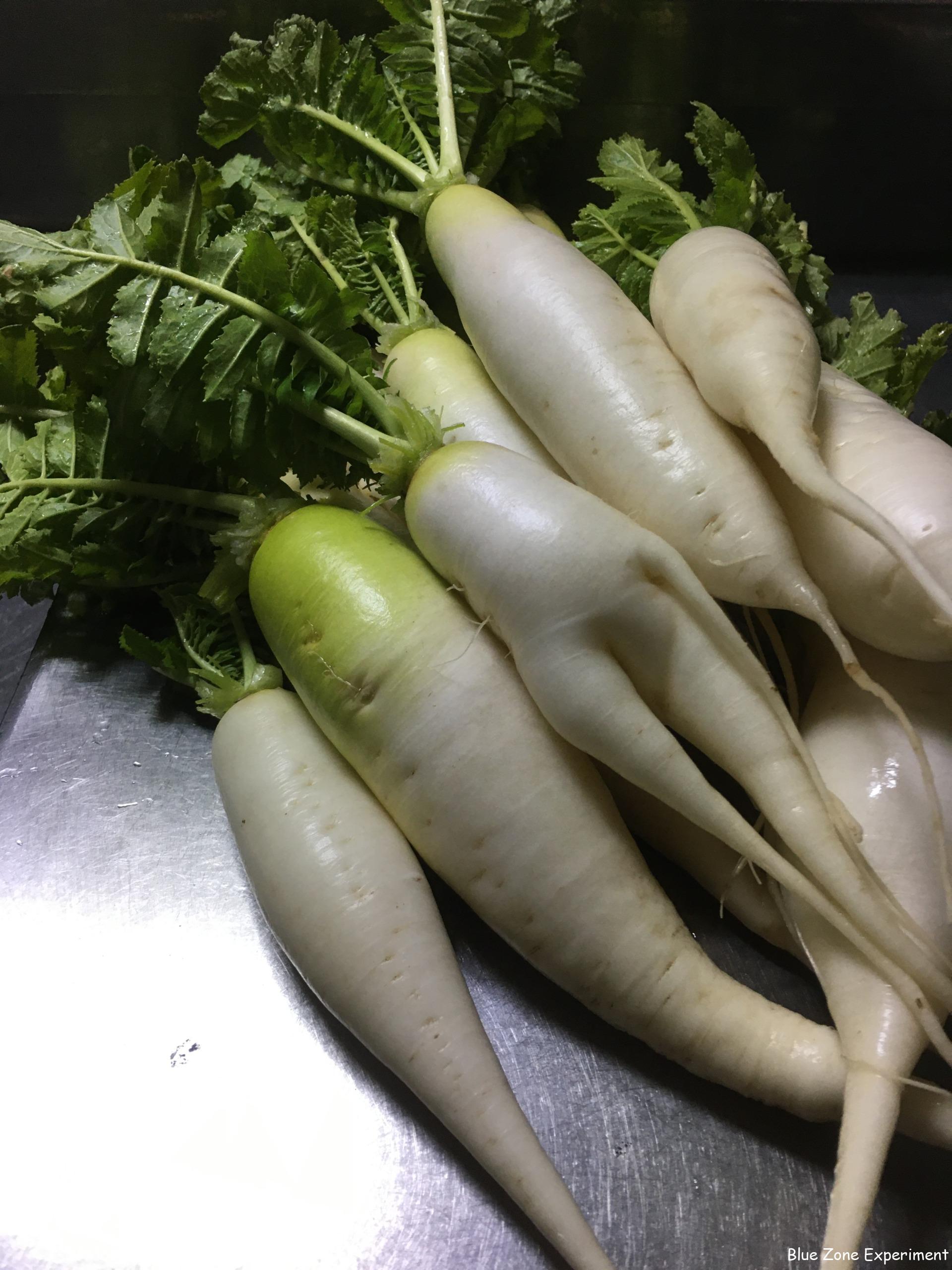 また、何者かに大根を食べられていました。一本は二つにちぎれていましたが、葉っぱはまだしおれていないので、昨日の夜から今朝にかけてやられてのでしょうか? 合計3本かじられていました。こう寒いと、動物も食べ物を見つけるのが大変なのでしょうね。どちらにしても寒くてダメになりそうなので、今日はたくさん収穫しました。小さいながらも大量なので、明日は大根料理です。楽しみです!