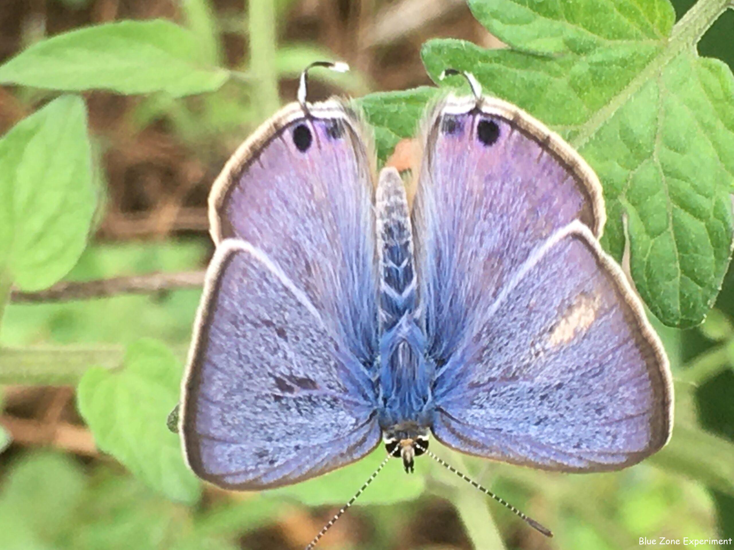 きれいな青色のシジミチョウが、ミニトマトの葉の上で羽を閉じたり開いたりしています。調べてみるとウラナミシジミのようです。マメ科の植物に卵を産み、幼虫が花やつぼみや実を食害するようです。きれいだと思って喜んでいましたが、インゲンと枝豆が危険ですね。