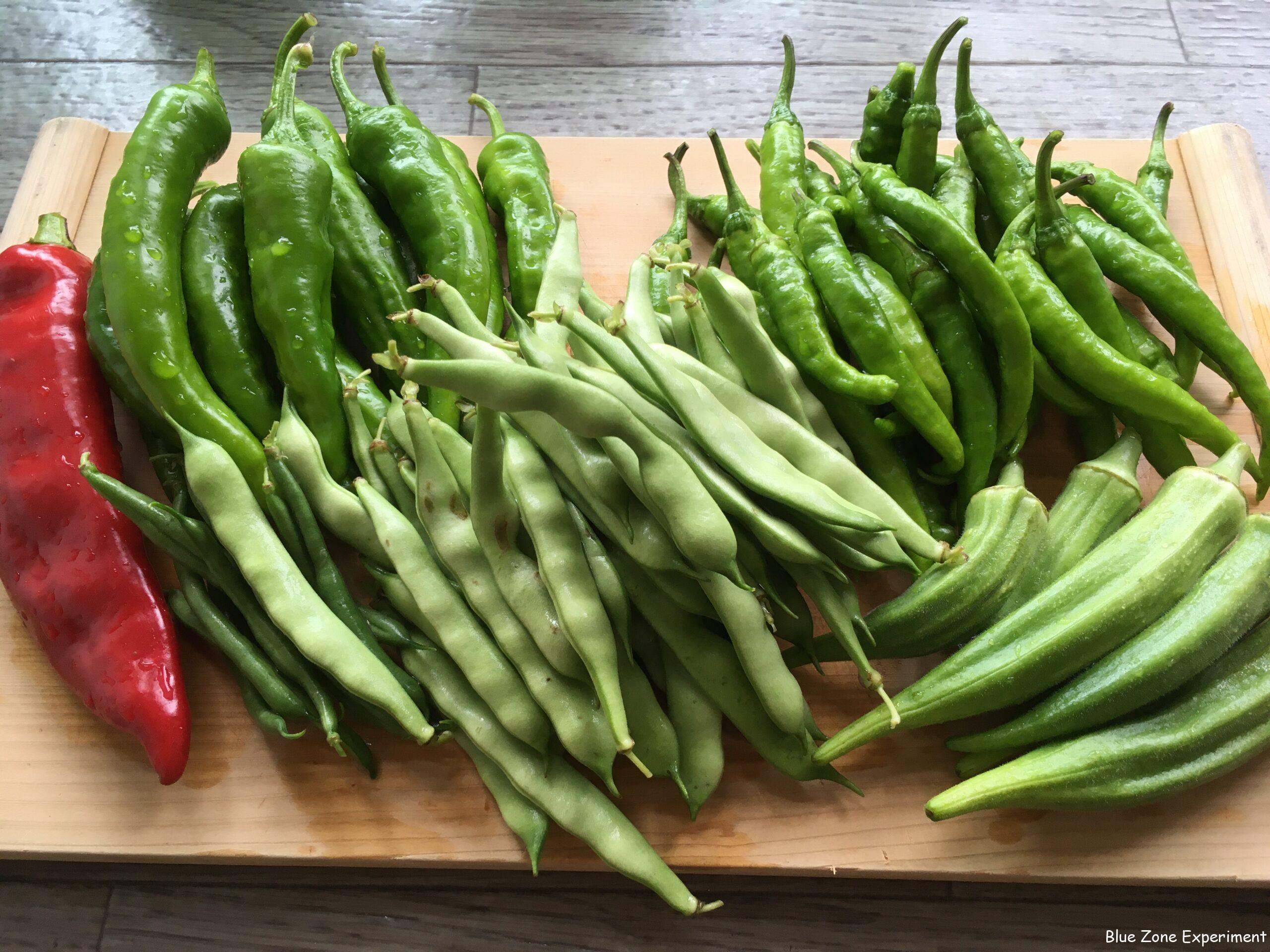 今日も真っ赤なパレルモを一つ収穫しました。万願寺とうがらしも、パレルモの大きさに近づいています。伏見甘長とうがらしは、小さいながらもたくさん実が付きます。つるなしインゲンはもうほとんど終わってしまいましたが、つるありインゲンが後を引き継いでくれています。オクラは、背もあまり伸びず、収量ももう一つですが、味は上々です。ケールは徐々にきれいな葉っぱが増えてきたので、ケールスムージー用に少しだけ採ってきました。ディル、スイートバジル、ホーリーバジル、赤カラシナも少しずつ。それから、ローズゼラニウムも冬は越せないということなので、葉っぱを収穫して干してみることにしました。切った葉を手に持っているだけで、ゴワゴワした葉っぱからは想像もできないような芳香にクラクラします。オレンジ小玉スイカは、これまで採ったマイクロスイカをさらに下回るサイズでの収穫です。ツルがついていた部分とお尻の部分が変な位置にあるのですが、それが目のようで、にっこり笑っているように見えます。