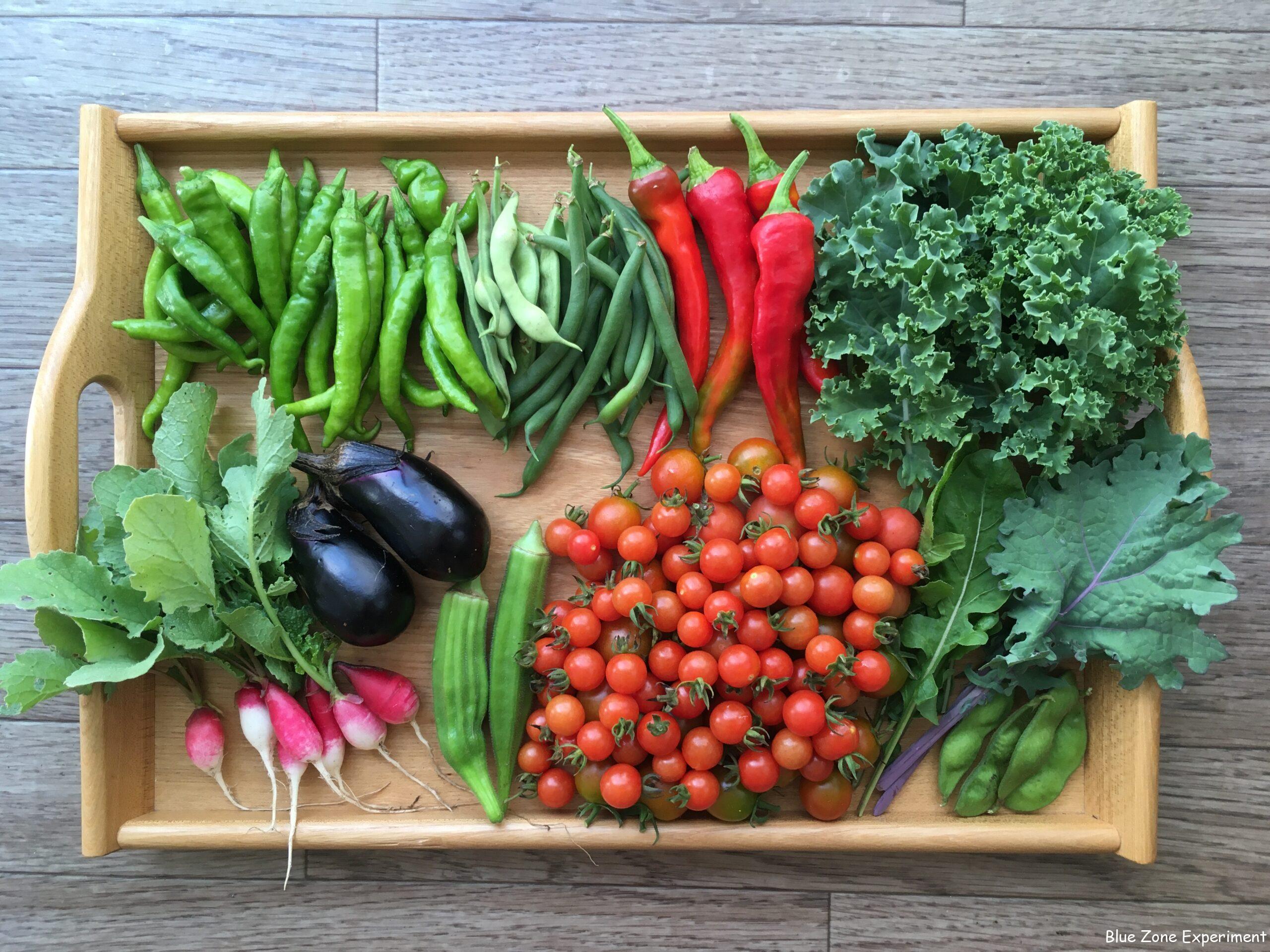 今日の収獲はやや少なめですが、カラフルでとてもきれいです。違う野菜が少しずつ採れると、飽きずに食べられてありがたいです。ミニトマトは、今日は 100 個採れました。今日も蛾に吸われた実が多かったので、完熟を待たずに収獲したものもあります。水ナスは、小さいですがきれいです。実は緻密で甘いので、生食にも向きます。ラディッシュもとても小さいですが、葉っぱも食べられそうです。オクラは、種取り用を残したいので収穫は少しだけ。枝豆は、膨らんだものがほとんどありませんでした。水不足がよくないということで、今日は水やりをしました。これからしばらく降りそうにないので、枝豆には厳しいですね。伏見甘長とうがらし、万願寺とうがらし(赤くなったもの)、つるありインゲン、つるなしインゲン、ケールなどのいつものメンバーのほかに、ルッコラとレッドロシアンケールをほんの少し収穫してみました。色とりどりの野菜は、見ているだけでも元気になれそうです。