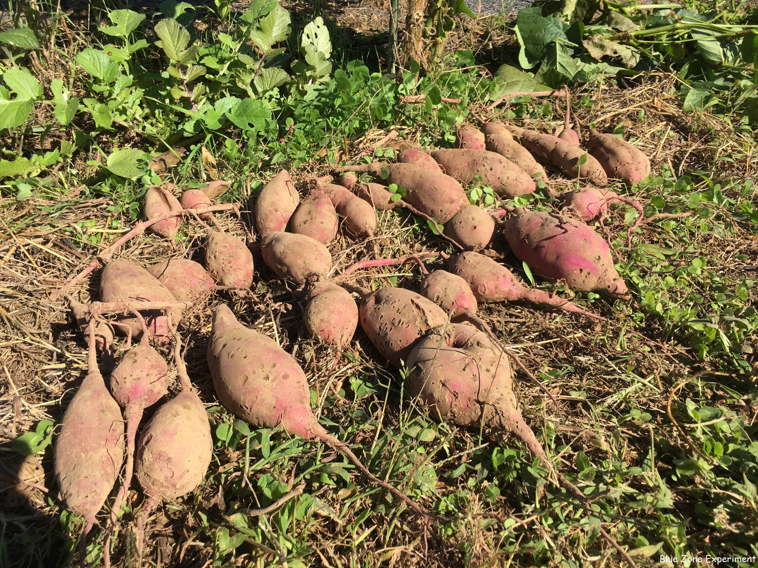 去年は、20 株定植したうちの 8 株が枯れてしまい、12 株分を収穫しましたが、40 個の芋が採れました。今年は、まだ収穫は終わっていないものの、去年と比べると、芋の大きさも数も少ない感じです。育った苗のツルを切って新たに苗を作って定植する方法を試しましたが、生育期間が短い高冷地にはあまり向かない方法なのかもしれません。