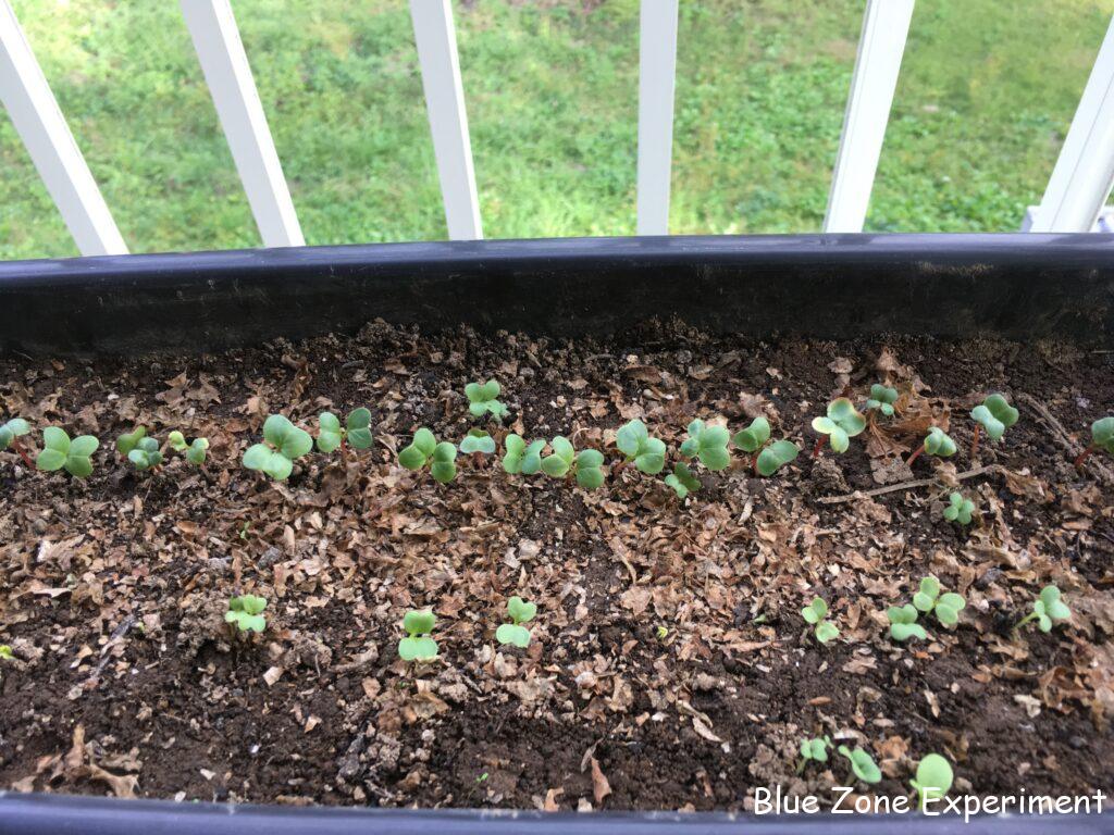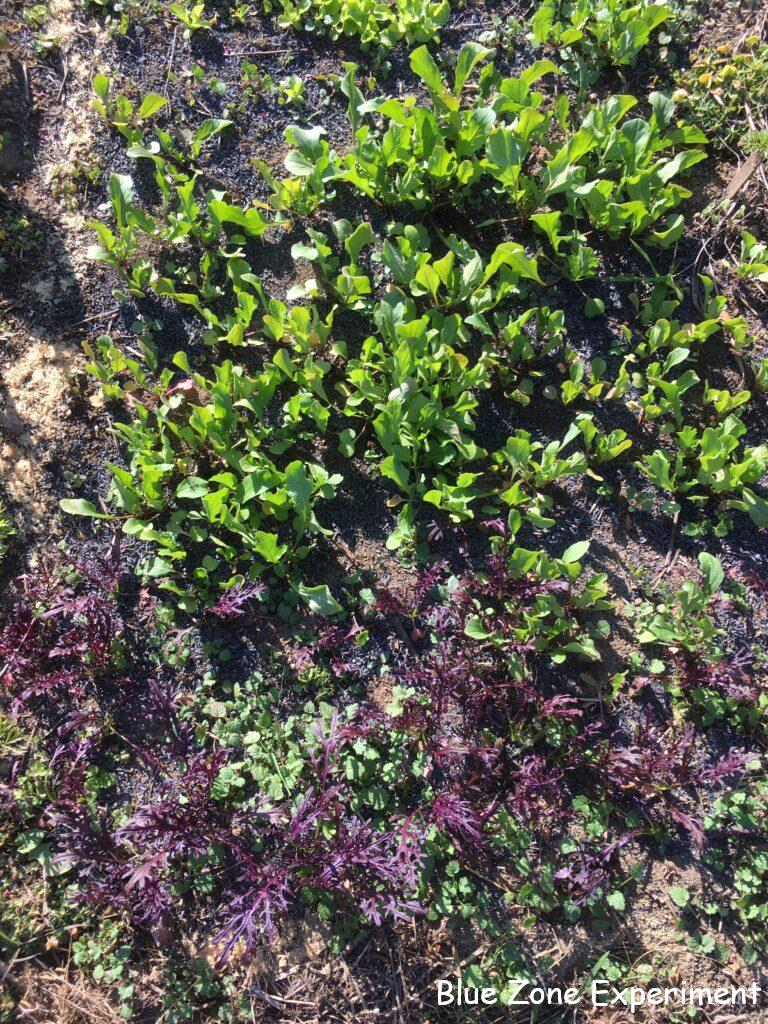赤カラシナとルッコラのベビーリーフにも霜が降りていましたが、日が照り始めると、何事もなかったかのように生き生きとしています。こんなに小さいのに、たいした生命力です。