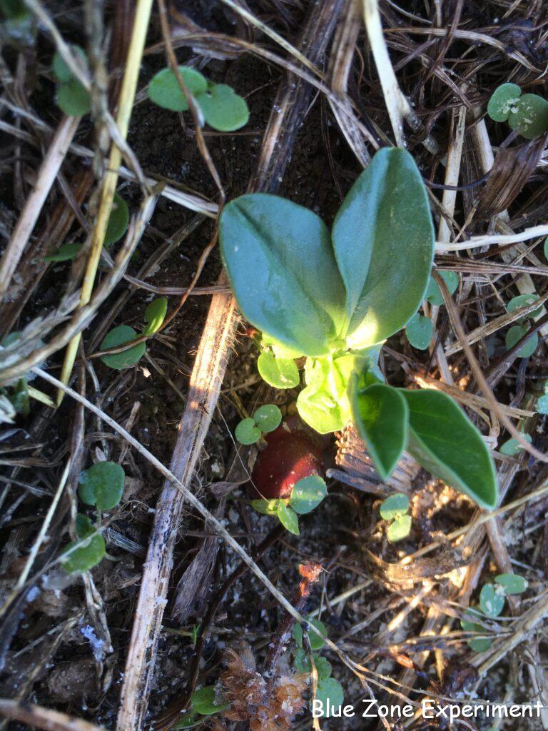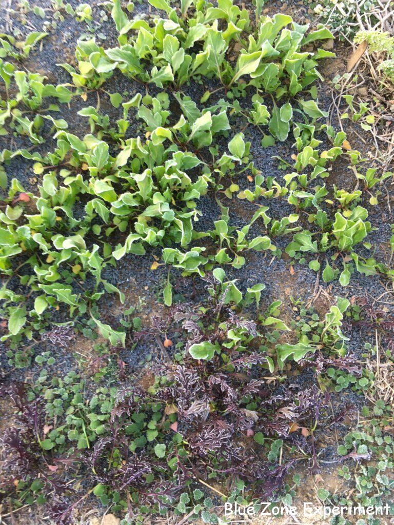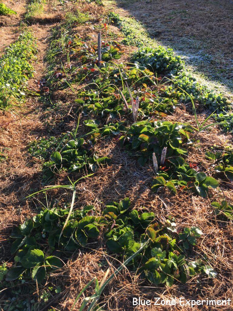 10 月 31 日に植え付けた、台所で発芽していたニンニクは、元気に芽を伸ばしていました。遅い時期の植え付けだったので、植え付けが遅れるとどうなるのか、これから観察してみたいと思います。ホームセンターで購入して定植したニラは、だんだん枯れてきました。根がしっかりしていれば春にまた芽を出すはずですが、植え付けたばかりなので、どうなるのかわかりません。サニーレタスは、寒くなって赤紫色が強くなってきました。この色はアントシアニンなので、寒いときに育ったサニーレタスの方が体にはよいということでしょうか? のらぼう菜も収穫できるサイズになってきましたが、まだ収穫していません。鍋物に入れるとよさそうです。イチゴとニンニクの畝は、とくに変化はなさそうです。ニンニクは、枯れた葉もありますが、新芽も出ているので、おそらく問題ないと思われます。畝脇のクリムゾンクローバーは、早朝は凍ってうつむいていましたが、暖かくなってくると、ふんわりこんもりと元の姿に戻りました。