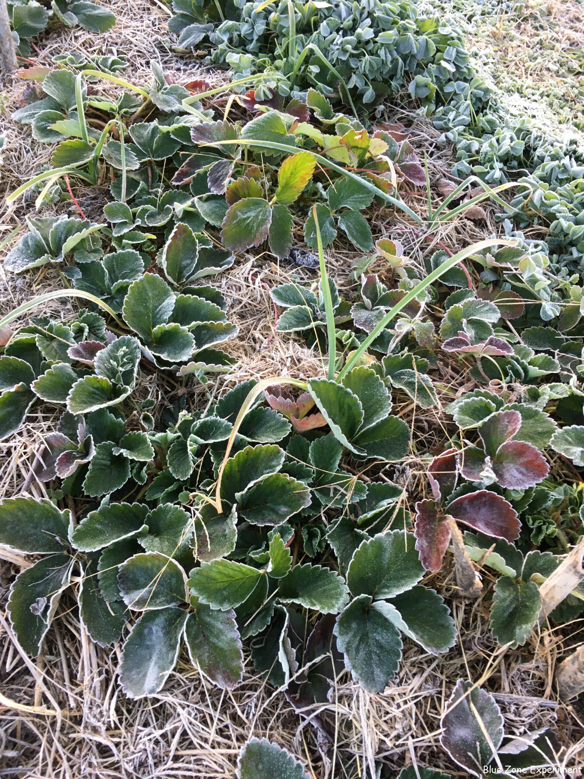 久しぶりに早朝の畑に足を踏み入れると、一面霜で真っ白です。畑に到着した午前 6 時半頃の気温は 4 ℃。手足が凍りそうな寒さのなか、植物はどうやって生きているのかと不思議なくらいです。寒くて作業も進まないので、別の用事を済まてから 7 時半ごろに戻ってみると、畑に日が当たり、霜はすっかり解けています。太陽に照らされて寒さが緩むにつれ、死んでしまいそうに見えた植物が息を吹き返しました。