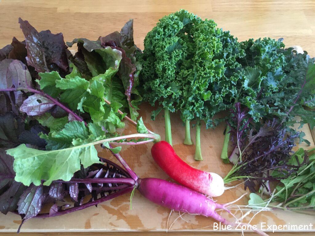 サニーレタスやケールは順調に育っているので、今日少し収穫しました。遅めに種をまいた赤カラシナとルッコラは、ベビーリーフとして食べようと、少しだけ収穫。ラディッシュと雲仙赤紫大根は、緑が多いのこの時期の収穫物に色を添えてくれます。大蔵大根も一本収穫しました。まだ短いですが、きれいな大根です。葉っぱもとてもきれいです。大根菜は大好きなので、きれいな葉っぱが収穫できるとうれしいです。