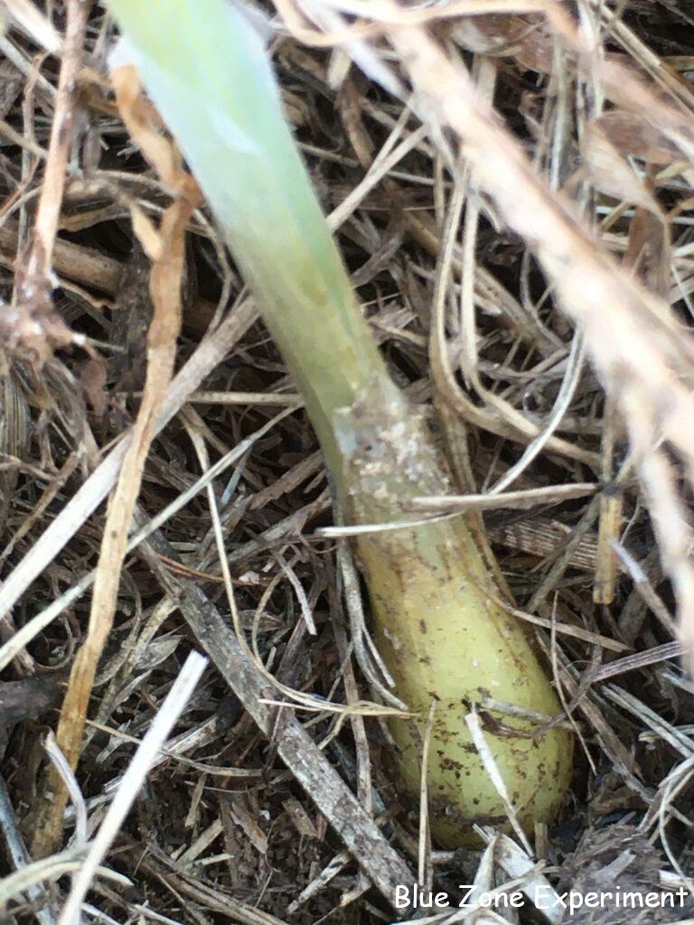 スティックセニョール(茎ブロッコリー)は、あまり大きくならないのですが、今日、頂花蕾がついているのを確認しました。500 円玉くらいになったら切ってしまわないと側花蕾が育たないようなので、次回には切った方がいいかもしれません。タマネギは、絶好調とは言い難い感じではありますが、マルチをめくって見てみると、根元のところがほんの少し膨らんでいるようないないような……。最後に植えた一番状態のいい苗は、一応すべて生きてはいるようなので、無事冬を乗り越えて大きくなってくれることを願います。