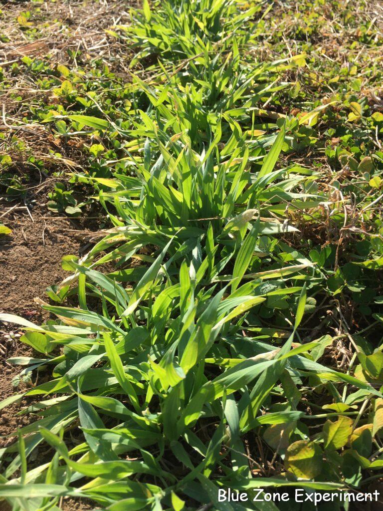 麦類は、スペルト小麦だけ発芽が悪いのですが(発芽しそうな頃に、誤って踏んでしまったのが原因かもしれません)、それ以外は順調です。一番最初に種をまいた大麦は、分けつしてモサモサと茂ってきました。小麦とライ麦も、元気そうです。