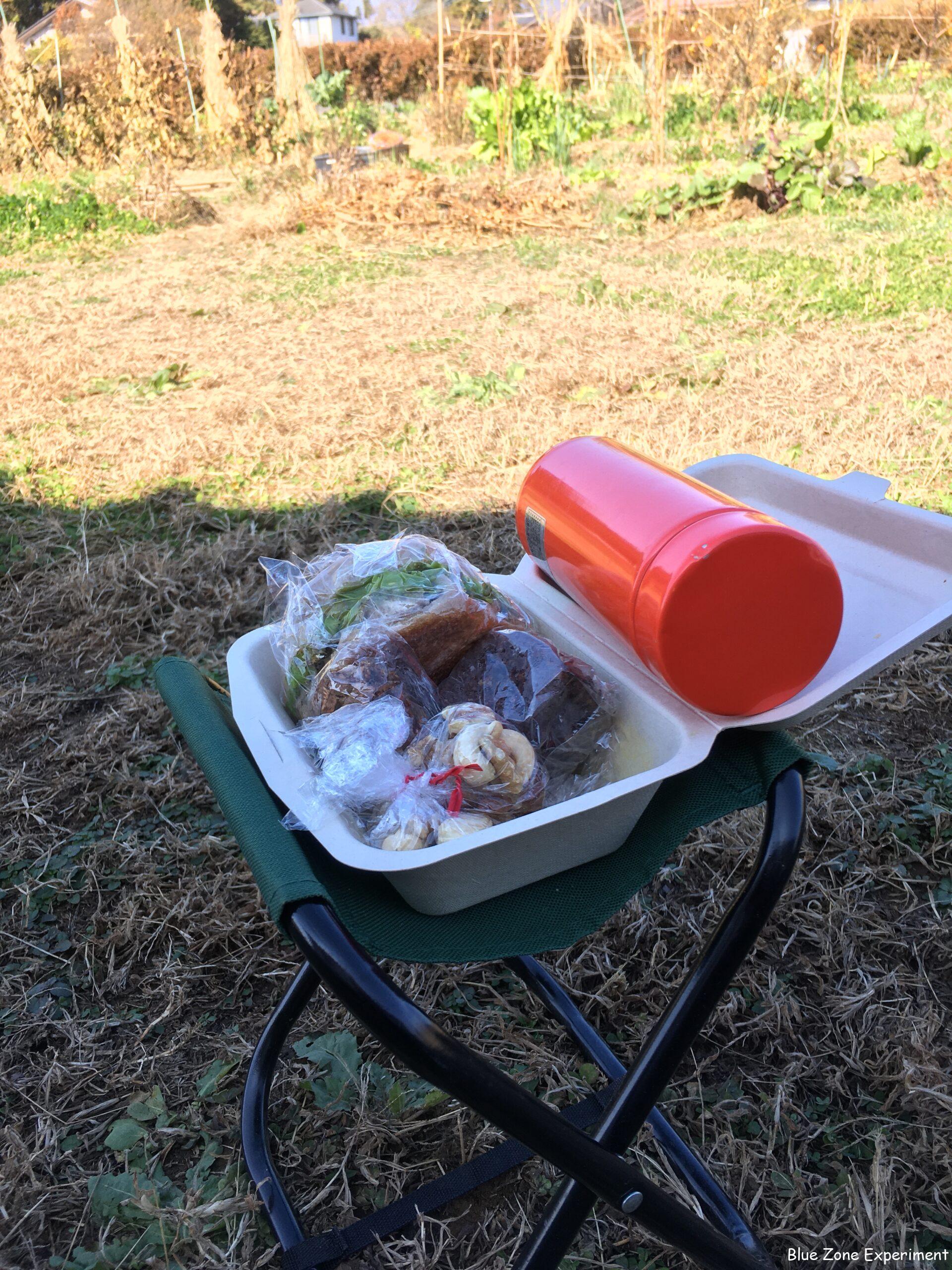 畑で食べるお弁当