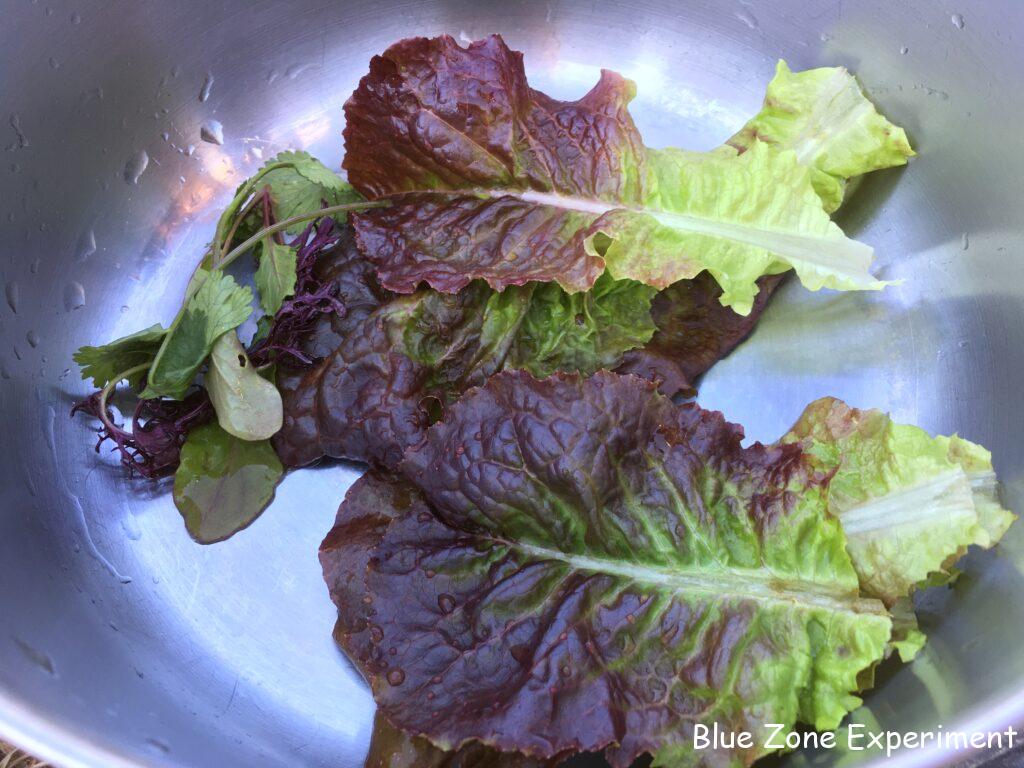 前回収穫したアブラナ科の葉物野菜は、試食してみると、のらぼう菜が一番おいしかったので、今日は多めに収穫しました。初期にはダイコンサルハムシにやられましたが、今はとてもきれいに育っています。カラシナもよく育っていたので、今期初収穫です。タケノコ白菜は、込み入っているところがあったので、大きめの株をより大きく育てるために一本間引きました。結球はしていませんが、菜っ葉としていただきます。ほかには、サニーレタス、赤カラシナとルッコラのベビーリーフ、ディルを収穫しました。ディルは前回に引き続きたくさん採れたので、乾燥させてドライハーブとして使用します。