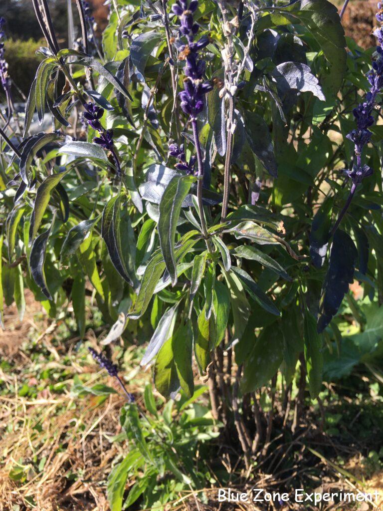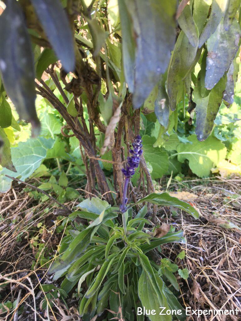 ブルーサルビアは、厳しい冬を乗り越えて新芽を出し、長い間咲き続けていました。そろそろ花も終わりだろうと思っていましたが、足元を見てみると、新芽が出て、新たに花を咲かせています。その姿を見ると、お母さんが小さな子供を霜から守っているかのようです。