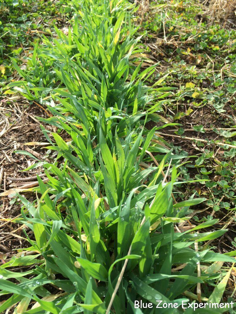 タケノコ白菜は、一番大きかったものが、結球しないままどんどん広がって大きくなっています。本来であれば縦長の品種のはずですが、すっかり違う形になってしまいました。初期の虫の被害がひどく、瀕死の状態から復活したので、たとえ食べられなくても、ここまで大きくなっただけでうれしいです。イチゴは、どんどん花を咲かせています。これから寒くなるので、さすがにもう咲かないと思いますが。同じイチゴの畝には、こぼれ種から発芽したパクチーが何か所かに生えています。寒い地域なので、越冬は難しいと思いますが、もしも生き残ってくれたらうれしいです。大麦は、相変わらず元気です。今年収穫した大麦は、麦茶にして飲みましたが、予想以上においしかったので、また来年も収穫したいです。