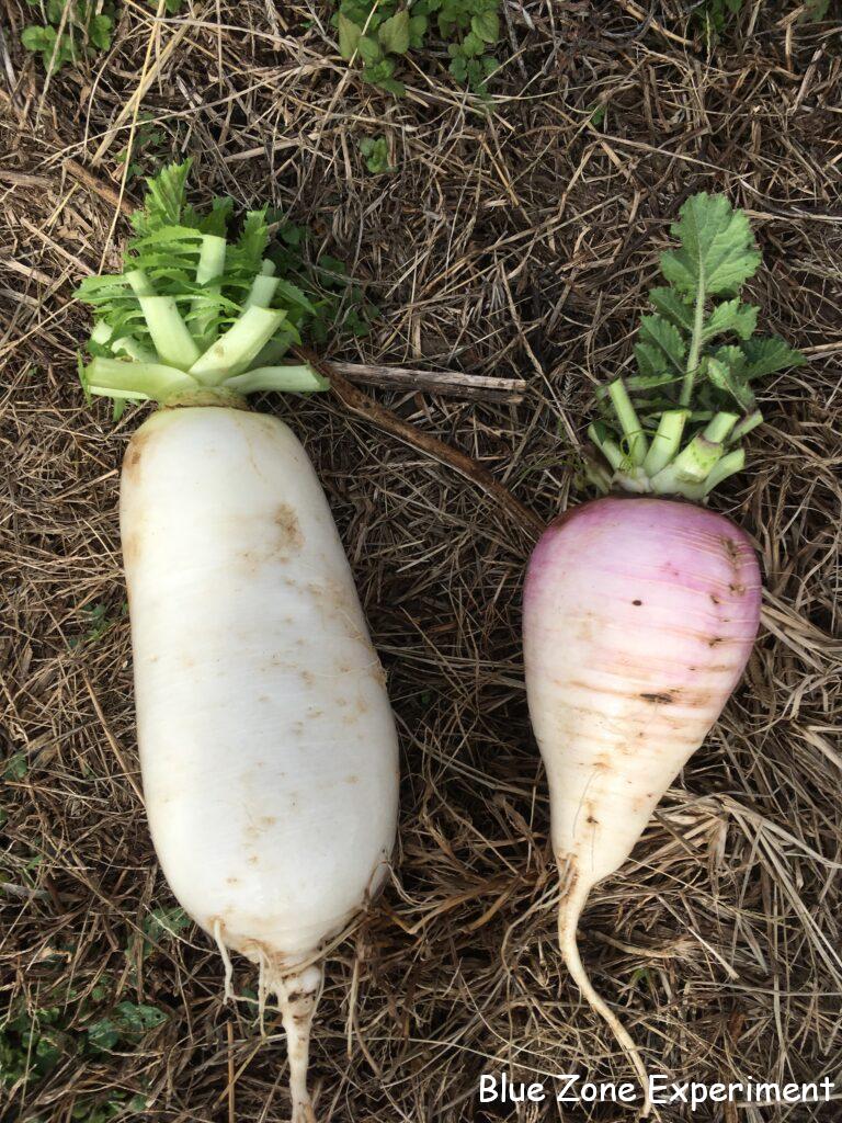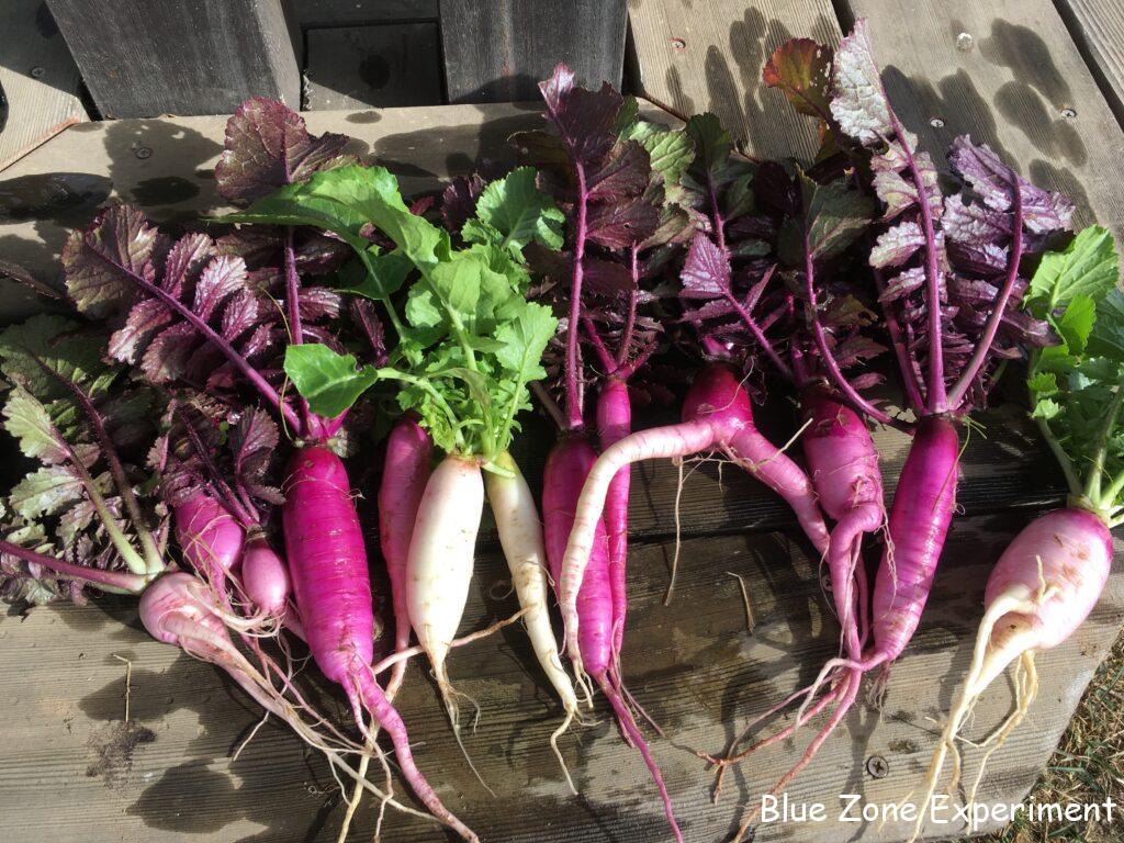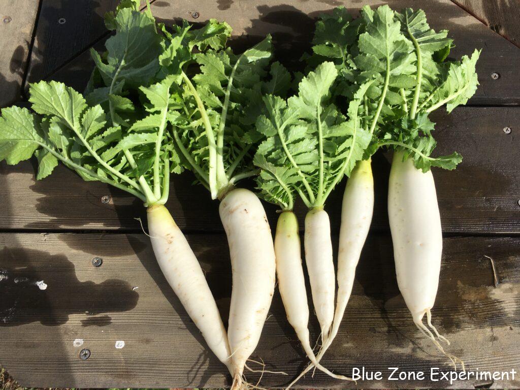 凍ってしまう前に大根を収穫しました。種取り用のもの以外は小さい大根ばかりですが、合わせるとそれなりの量です。以前収穫した大きな大根もまだ使いきれていないので、今日明日中に何とかしようと思います。