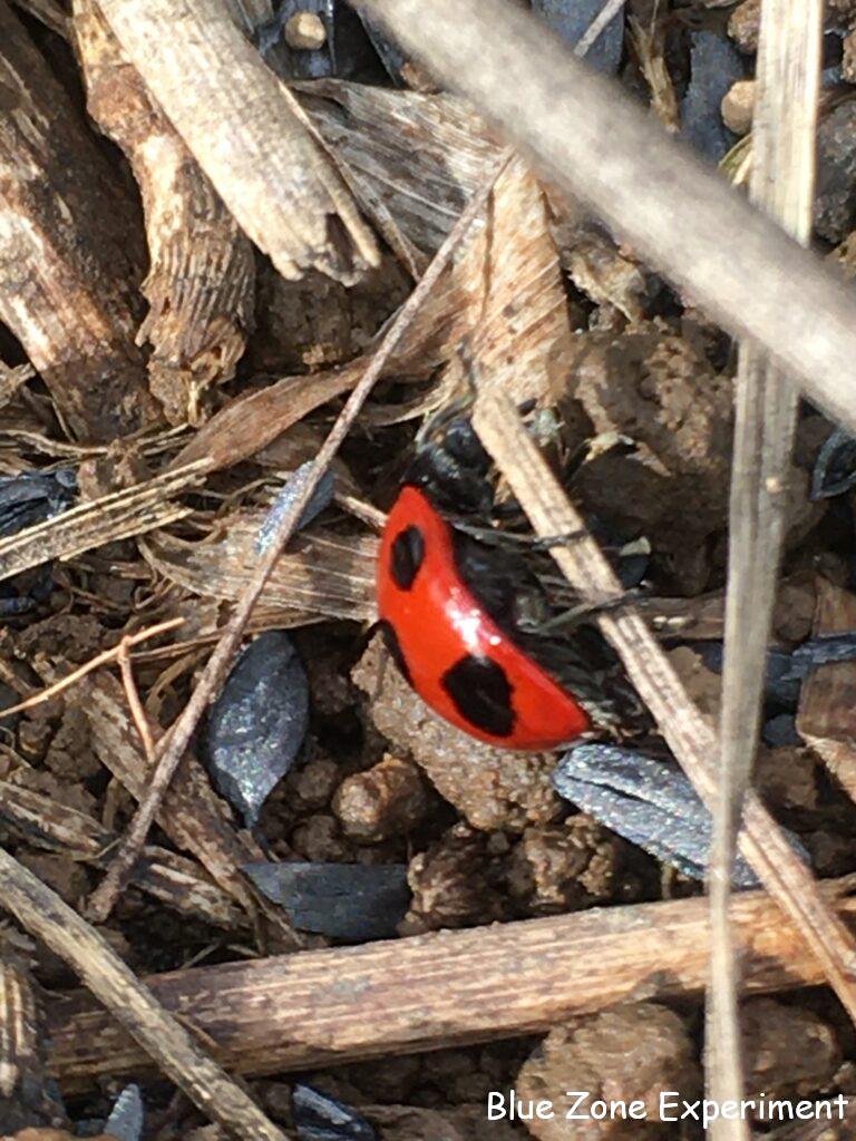 明日から 12 月ですが、今日はカエルを二匹見かけました。そろそろ冬眠しなくても大丈夫なのでしょうか? テントウムシも見かけました。枯草の上ではよく目立ちます。モンシロチョウは、寒くなってもまだ卵を産んでいるようで、アオムシもいました。