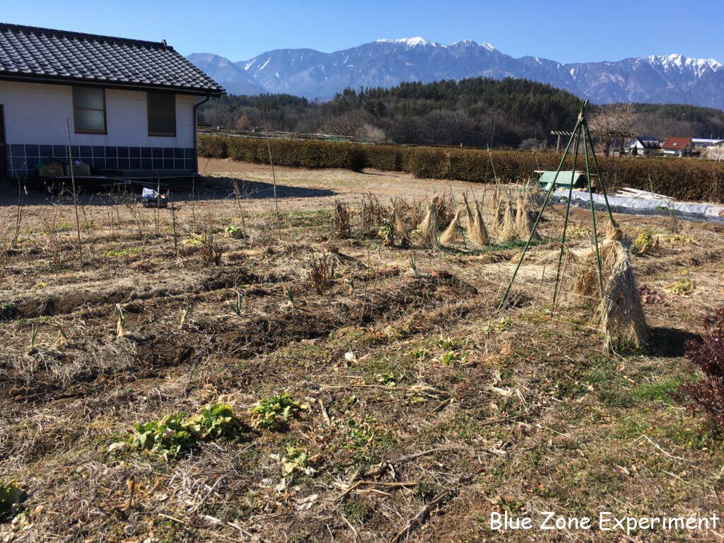 この冬は 10 年に一度の寒さと言われていますが、12 月のはじめからと 2 月のはじめまで 2 か月とちょっと国外に出ていたので、幸いその寒さを経験することはありませんでした。その間、畑のようすが全くわからず心配だったので、帰国した 12 月 9 日にちらっとだけ畑に寄ってみました。そのときは時間がなくてじっくり見て回ることができなかったのですが、何もかも枯れてるなぁ…という印象でした。