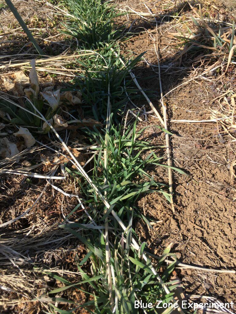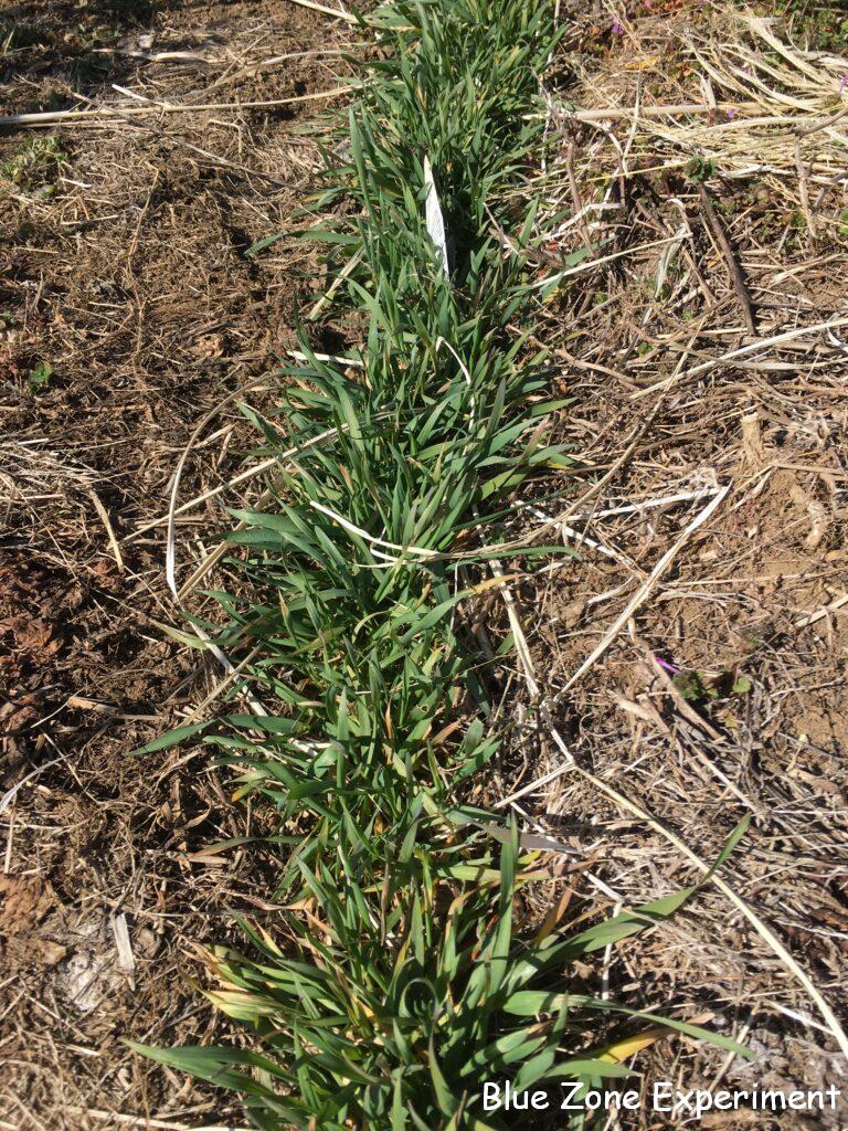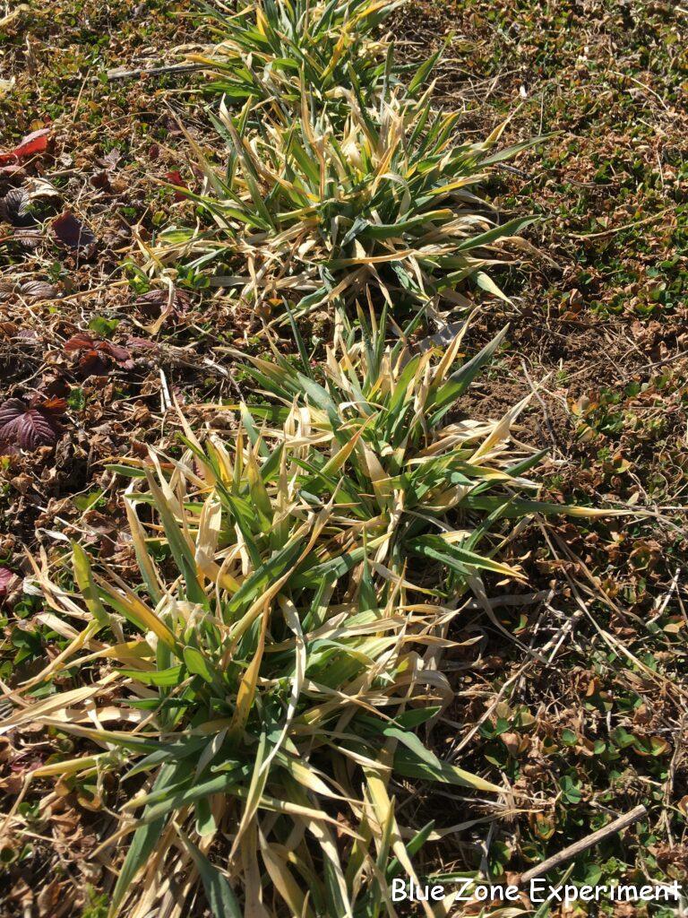 寒さに強い麦類はすべて元気です。このうち大麦が寒さには一番強いはずですが、最も枯れています。早く植えて大きくなっていたせいなのか、風当たりの強い場所だからなのかは不明です。小麦が一番元気そうです。ライ麦は、日当たりの悪い畝の北側なので、条件があまりよくありません。でも、どれも問題なく育つと思われます。