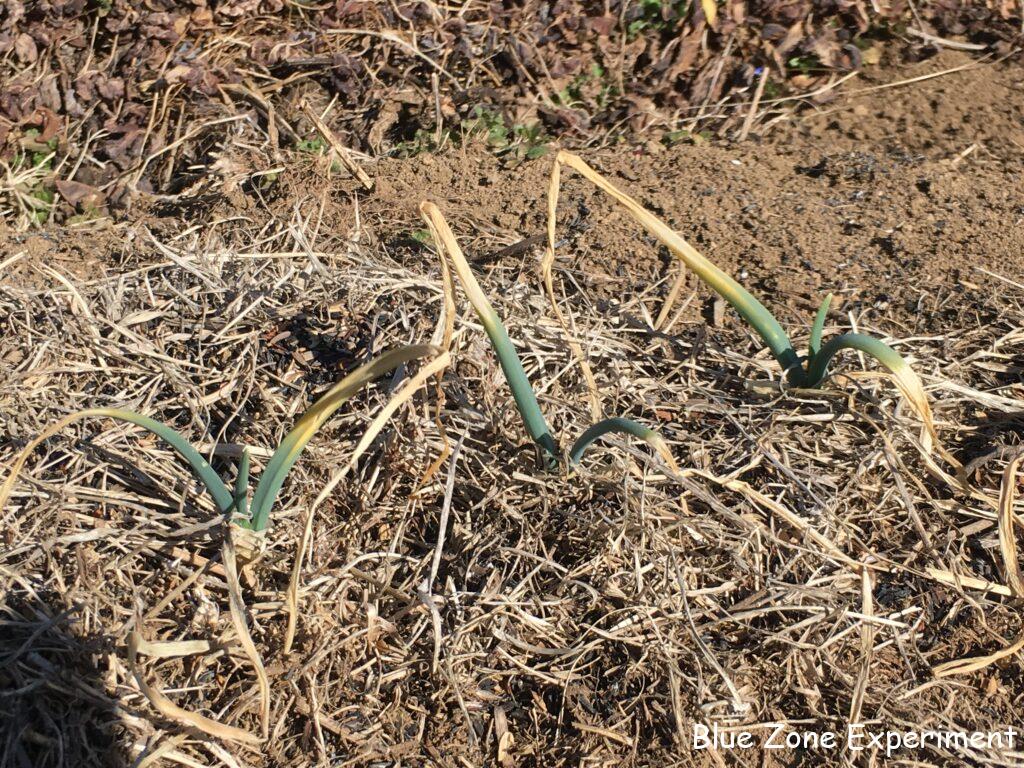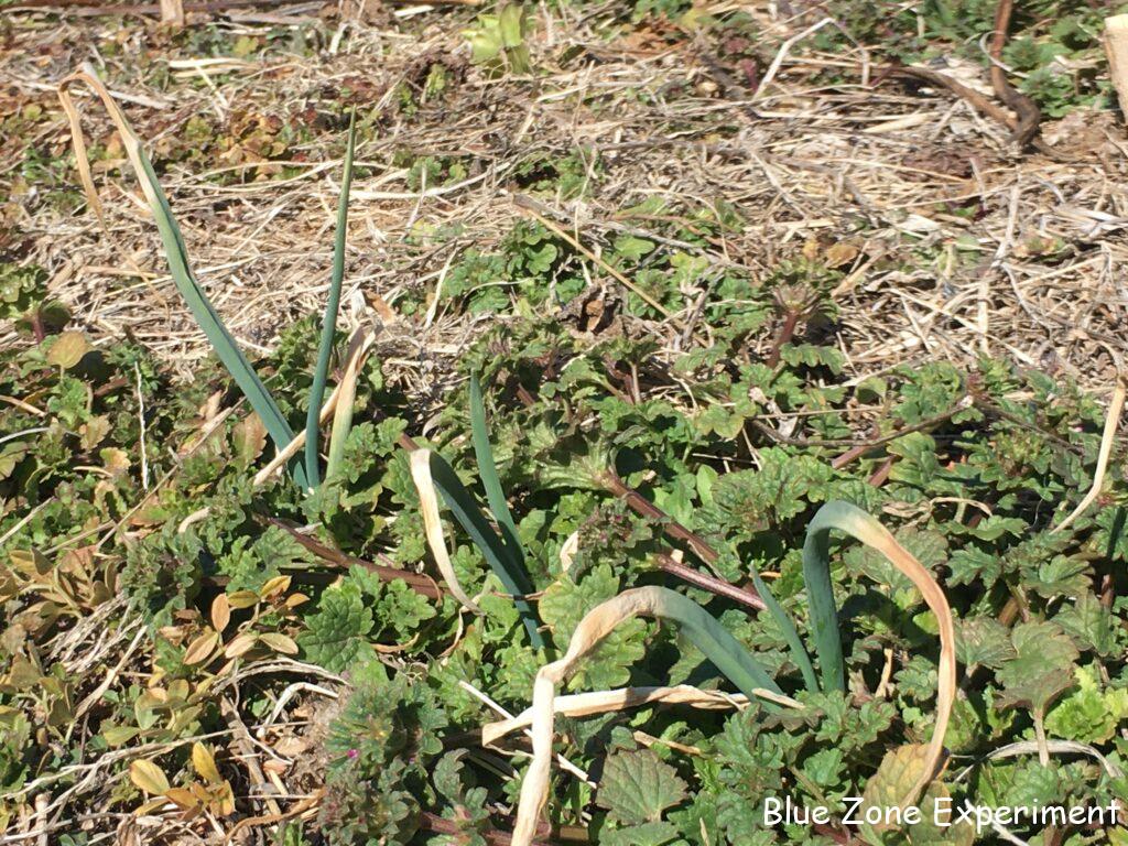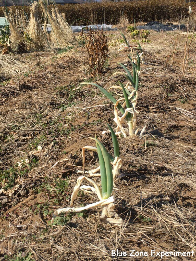 何か所かに植えたタマネギは、寒さのせいか成長せず、小さいままですが、それなりに元気そうです。両隣の畑のタマネギも同じくらい小さかったので、この寒さでは仕方がないのだと思います。タマネギの周りにホトケノザがいっぱい生えているところもありましたが、きっと霜よけになってくれていると思うので、そのままにしておきました。