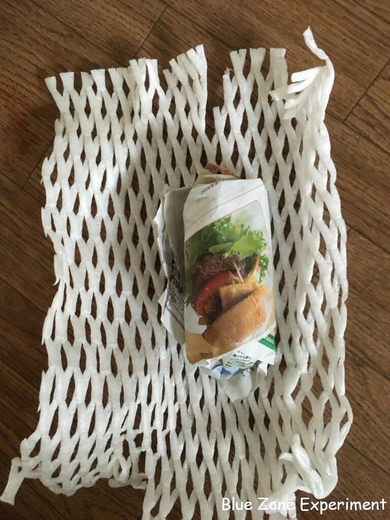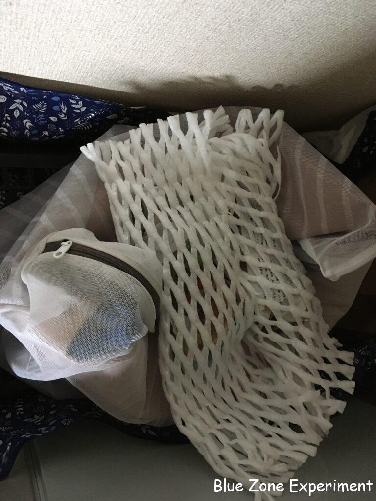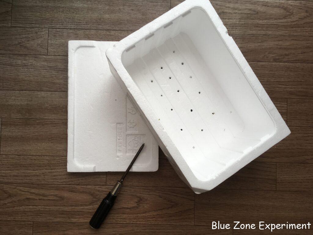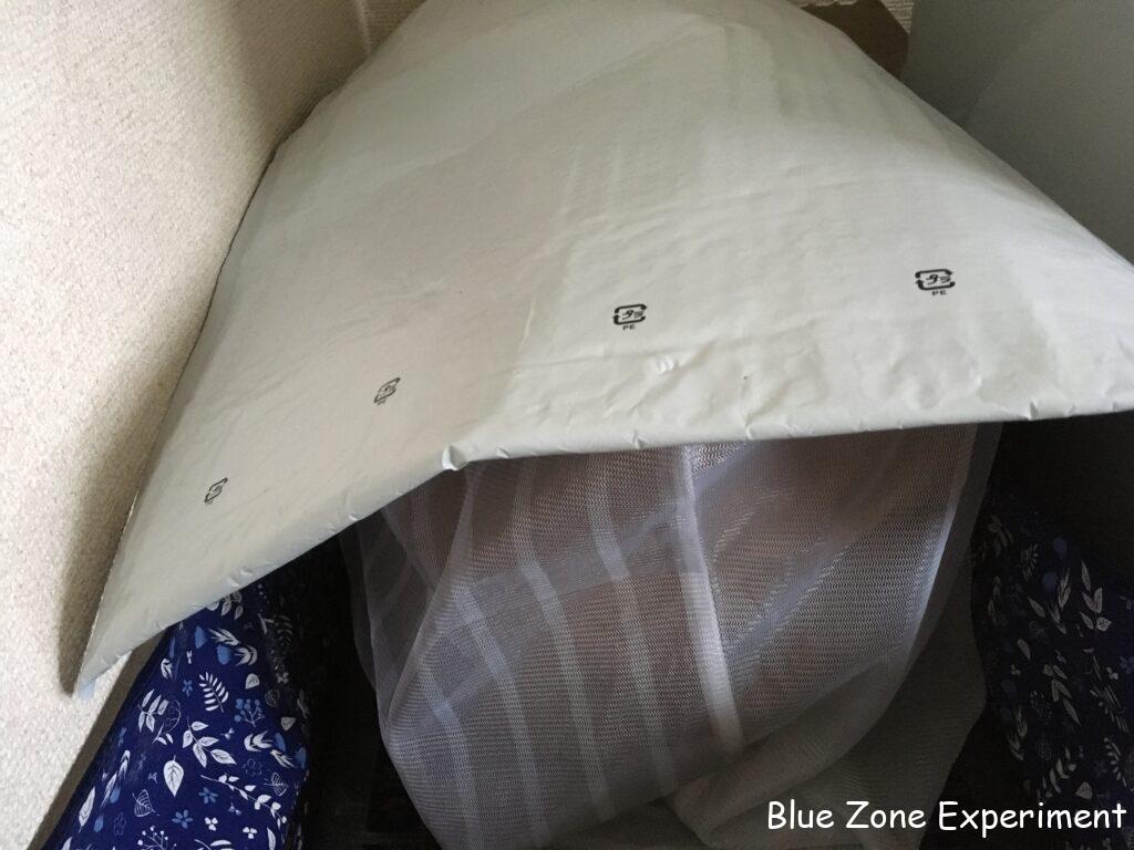 そこで、たまたまあった発泡スチロールのネットで新聞紙に包まれた芋をさら包み、芋が直接高温に触れないようにしてみました。夜は温度が下がるので、これに何かをかぶせて、放熱を防いだ方がいいかもしれません。