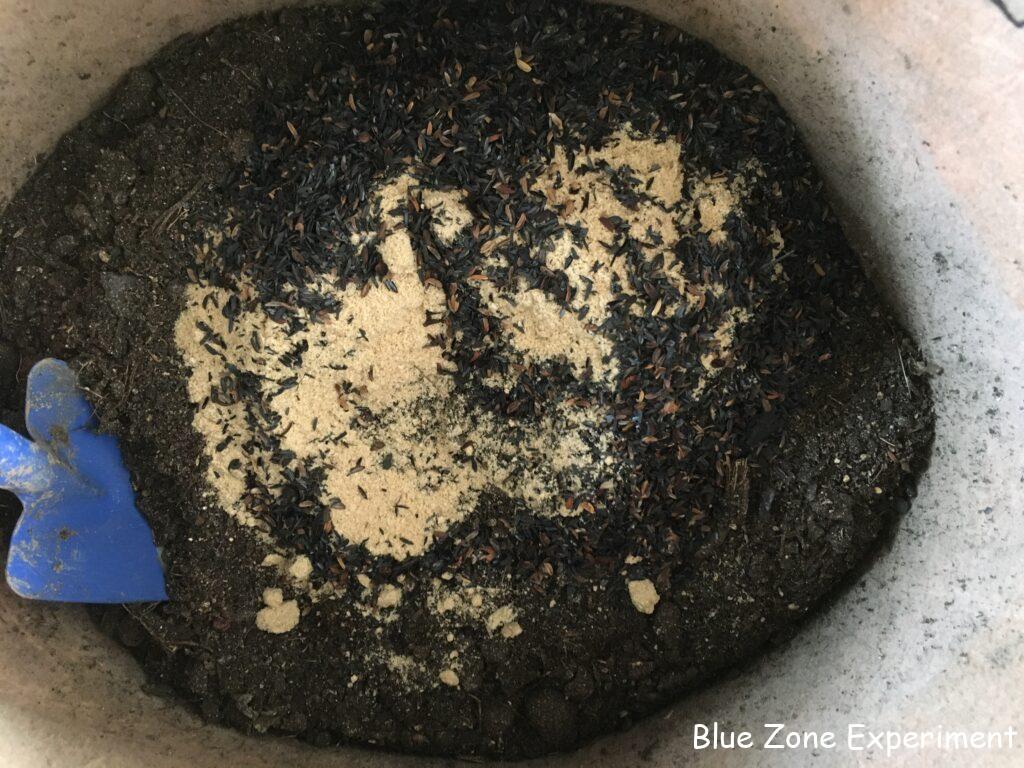 自然農のベテランの方に聞いてみると、芽を出すだけなら、土に入れる必要も日光を当てる必要もないので、乾燥を防ぐために新聞紙で包んで、冷蔵庫の上などの温度が一定(20 ℃以上)に保たれる場所に置くだけでいいとのアドバイスをいただきました。冷蔵庫の上は、残念ながら他のものに占領されていて置くことができませんが、冷蔵庫の横でコンポストをしているので、それを利用することにしました。不織布のポットに土を入れて生ごみを発酵させているのですが、これが発酵熱でけっこうあたたかくなるのです。冷蔵庫の上よりもむしろ良いかもしれません。最初は、新聞紙に包んだ芋を直接乗せて、内側にエアキャップが貼られた袋をかぶせてみました。触ってみると、どうもちょっと熱すぎるようです。