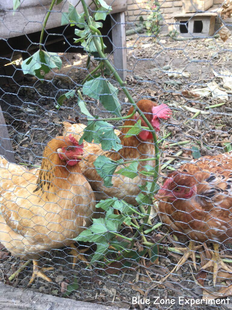 帰国が近づいていたので、そろそろ立派なサツマイモができたに違いない! と期待して掘ってみると、小指の先ほどの芋がついているだけ……。ツルは長いのに、がっかりです。ニワトリが食べるということで、やってみると、喜んで食べていました。少なくとも無駄にはならなくてよかったです。