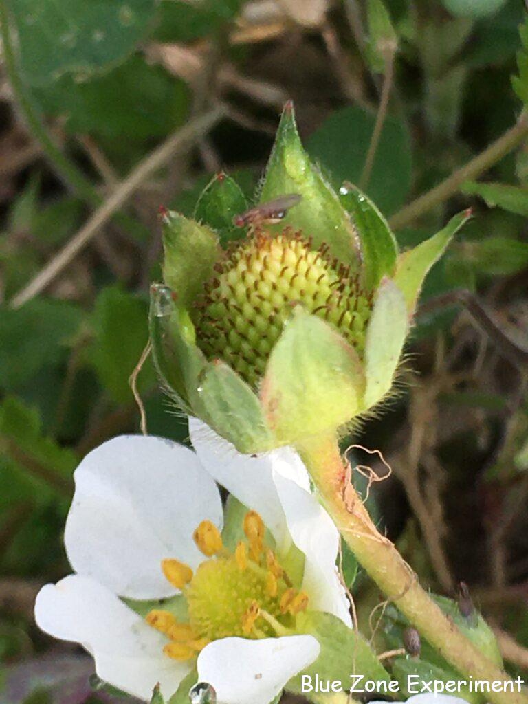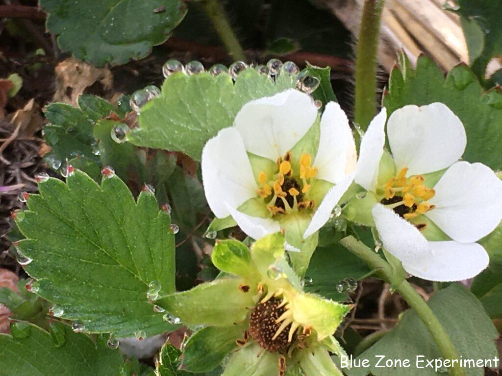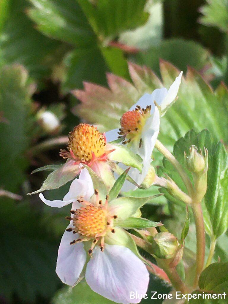 白い小さなイチゴの花がたくさん咲いていました。普通のイチゴもワイルドストロベリーも花盛りです。蜂はまだ見かけませんが、ハナアブを見かけたので、きっと受粉を手伝ってくれていることでしょう。