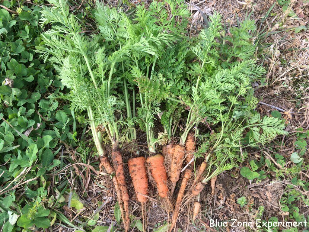 今日の収穫は、いつもどおりのケール二種、菜の花、ニンジンです。葉物野菜が不足する季節、緑のものが収穫できて助かります。