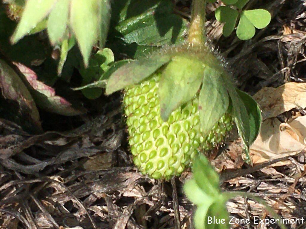 イチゴは、とてもたくさんの花をつけています。これが全部実れば大収穫ですが、きっとそうはいかないのでしょうね。すでに、イチゴらしい形になってきたものもあります。