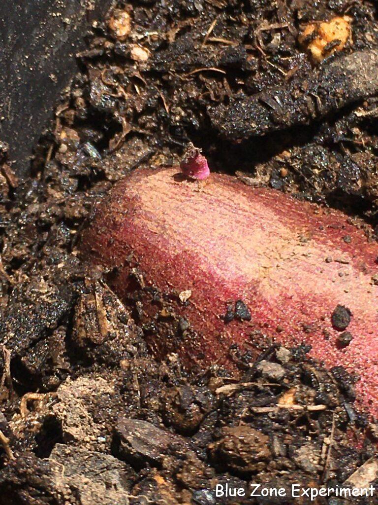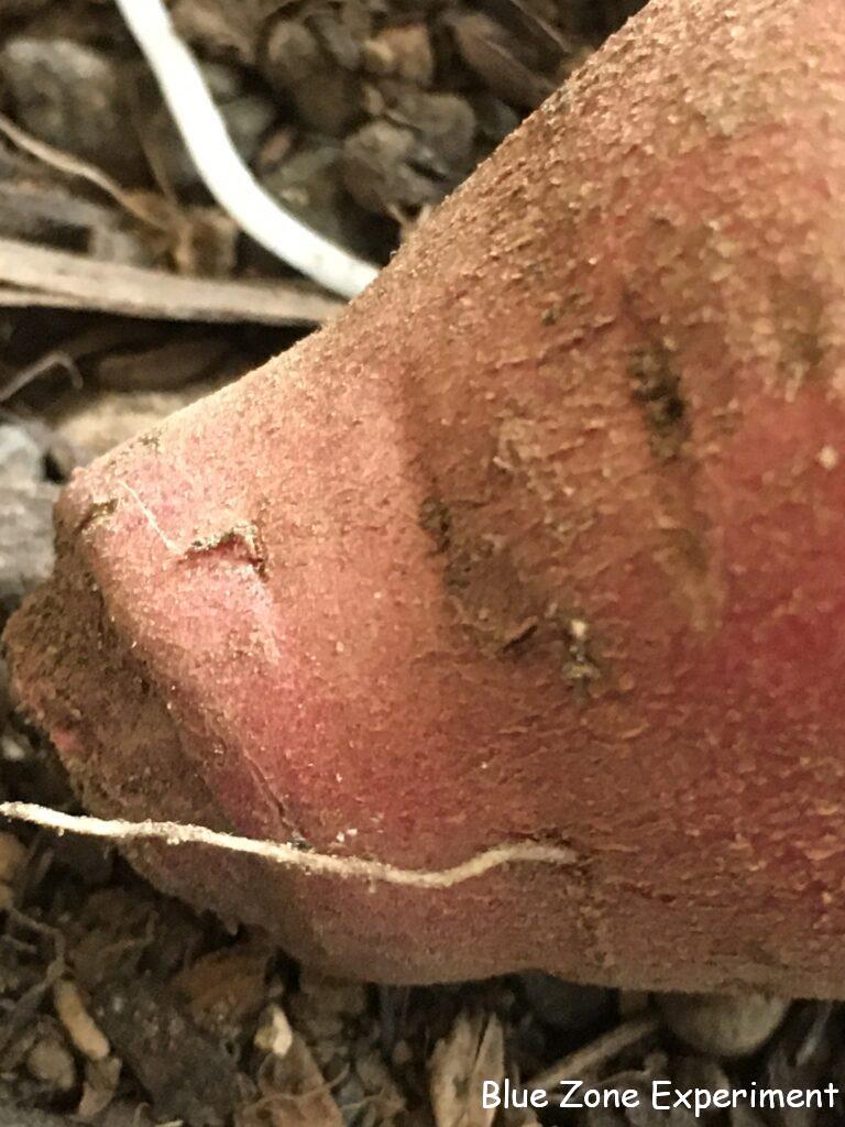 なかなかうまくいかないサツマイモの苗づくりですが、昨日とうとう発芽と発根を確認しました。今年の苗づくりは、まず、自家採種した紅はるかが腐ってしまい(保管温度が低かったためと思われます)、次にスーパーで購入した紅はるかもダメになりました(プランターの温度が上がりすぎて、煮えてしまった気がします)。4 月 28 日、スーパーで購入した名前のわからないサツマイモで三度目のチャレンジを開始しましたが、やはり発芽しません。5 月 7 日、たまたま紅はるかをいただいたので、名前のわからないサツマイモと一緒に、お湯に浸してみました。48 ℃のお湯に 40 分ほどつけると消毒と発芽促進の効果があるということで、去年やってみたのですが、効果が見られず、今年はこの過程は省いていました。でも、藁にもすがる思いで、一旦土に埋めていた芋といただいた芋をお湯に浸しました。その 8 日後の昨日、とうとう、小さな小さな芽が出てきました! 植付適期は 今月末から 6 月半ばまでなので、とても間に合わないと思いますが、奇跡の急成長ということもあるかもしれないので、あきらめずに見守りたいと思います。