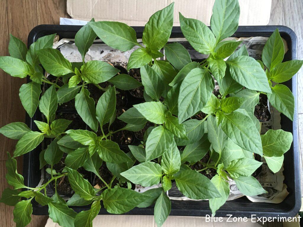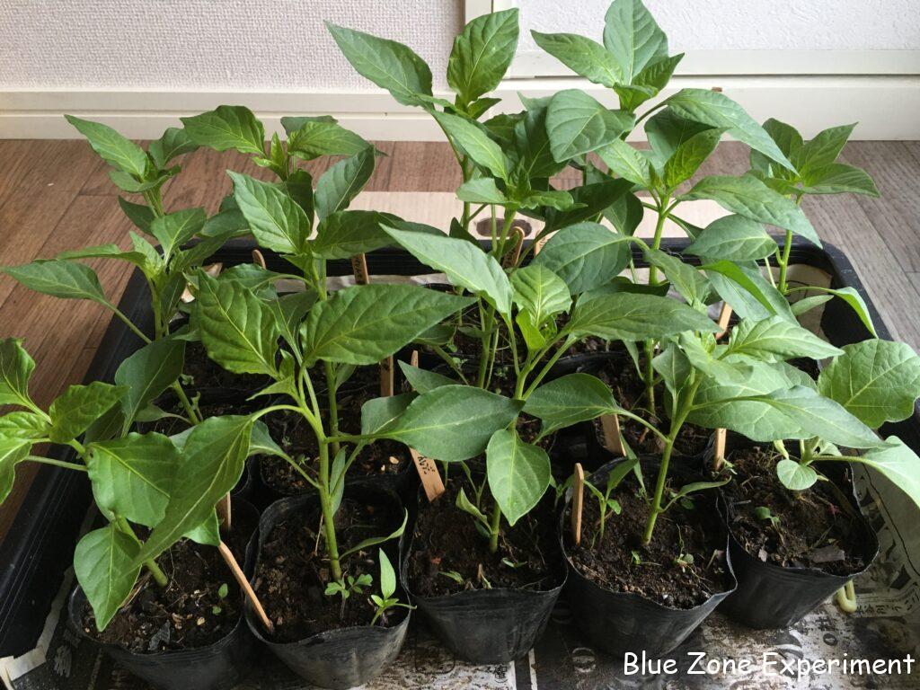 ナス科の中でも特に寒さに弱いトウガラシ類ですが、明日は 30 ℃を超える暑さということで、そろそろ定植することにしました。パレルモ 10 株とピーマン 3 株です。パレルモは、スーパーで買ったものからとった種で去年栽培し、甘くておいしかったので、種を採取し、今年も栽培することにしました。ピーマンは種苗交換会でいただいた種を使いました。トウガラシ類は、まだ小さいものがほんの少し残っていますが、これでほとんどです。