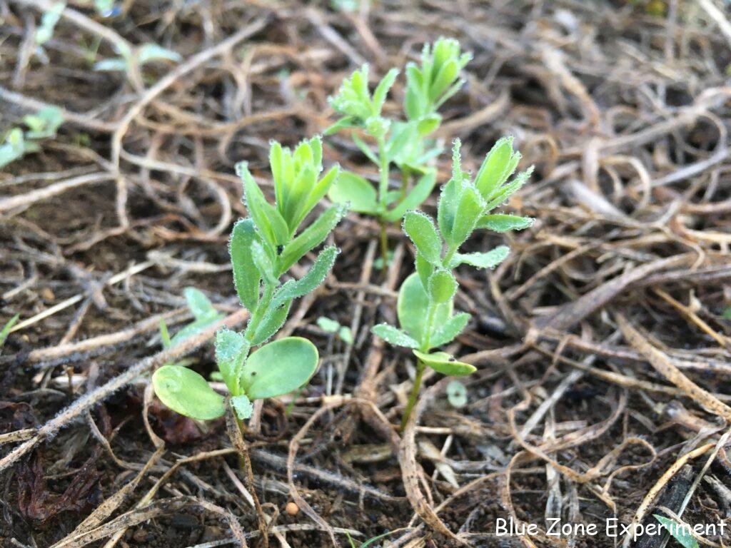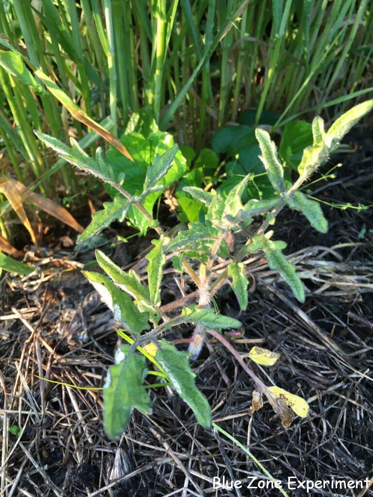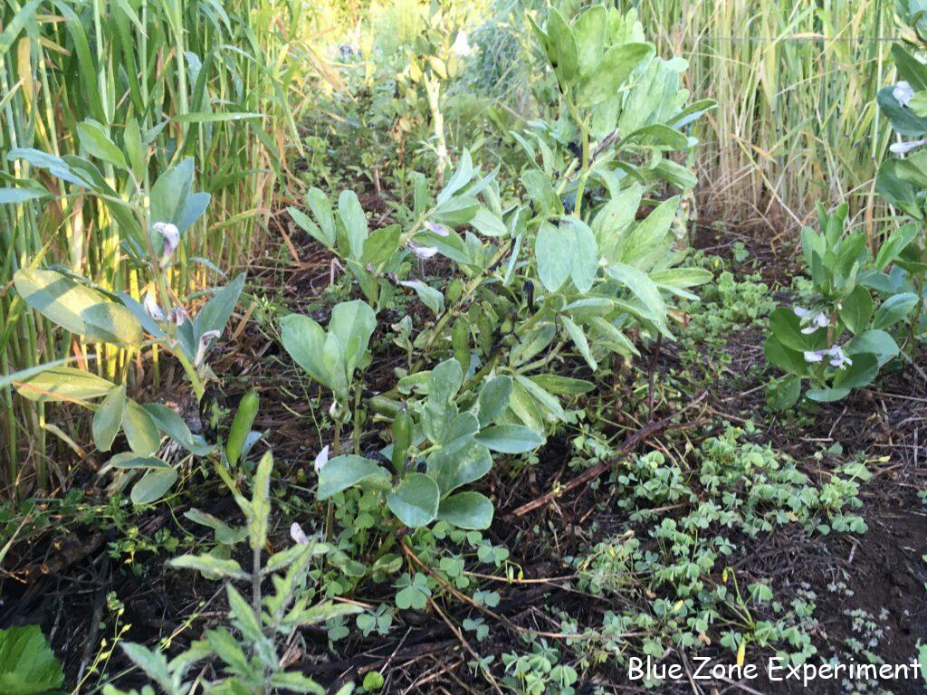 約一週間前に定植したクサソテツ(コゴミ)は、日照りで一気に枯れてしまいましたが、ここ数日の雨のおかげで少し元気を取り戻しました。一株は何とか生き残りそうです。もう一株は、葉っぱがすべて枯れてしまったのですが、もしかしたら成長点は残っているのではないかと期待しています。赤そら豆は、アブラムシの被害がひどく、成長が思わしくありません。そら豆はアブラムシが付きやすいと聞いていましたが、本当でした。麦に囲まれて寒さ除けにはなっていると思いますが、風通しが悪くてよくないのかもしれません。
