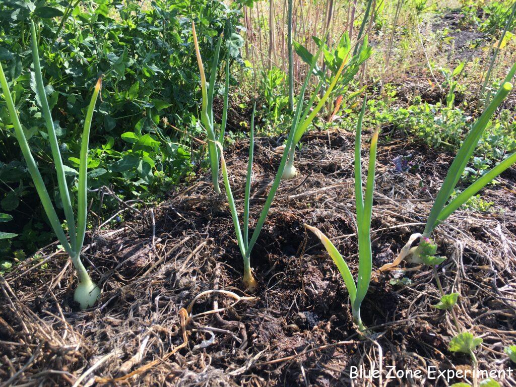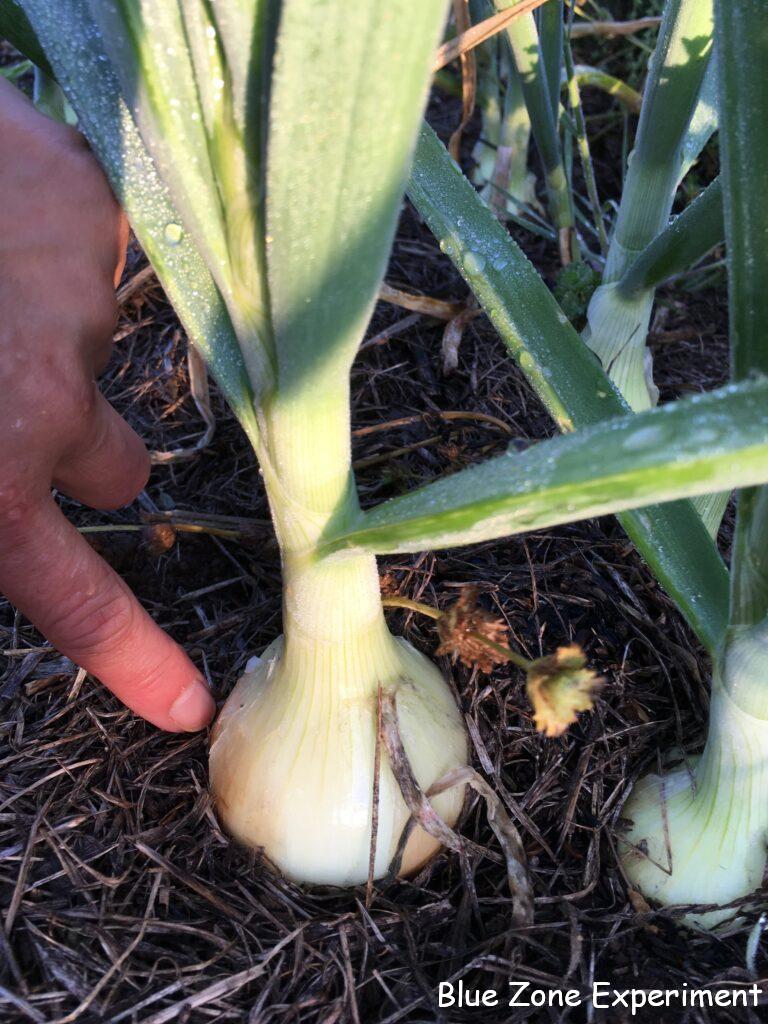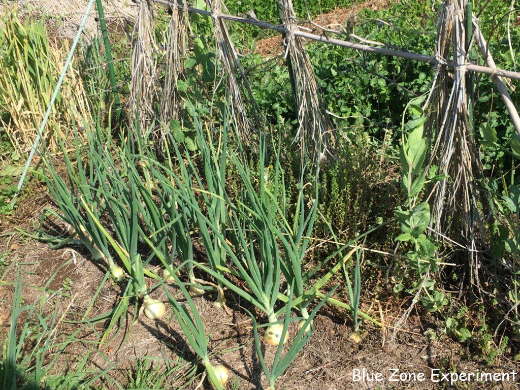 タマネギは、ピンポン玉を少し超える大きさで喜んでいましたが、さらに成長してきました! あと数週間で収穫だと思いますが、思いのほか成長して感激です! 全くダメだった他の場所のタマネギもピンポン玉を目指せる程度のサイズになってきました。自家製ボカシ肥料が効いたのかもしれません。そして、タマネギと同じ畝のオオサヤエンドウも徐々に成長してきました。スナップエンドウとグリーンピースは、虫の息です。