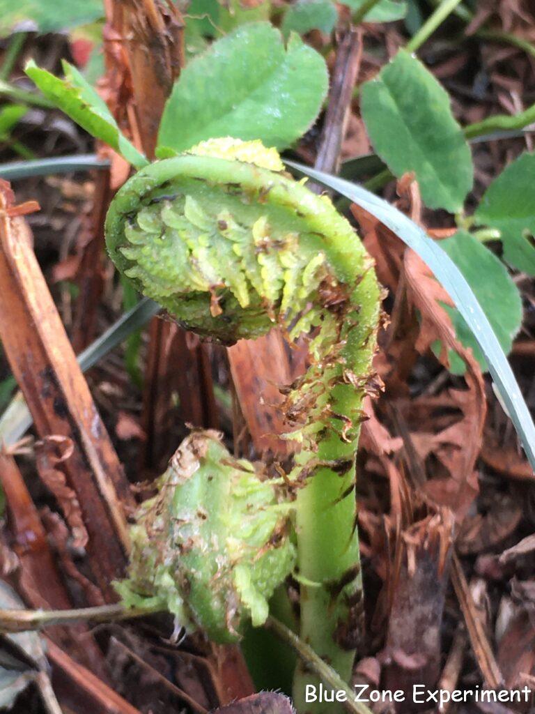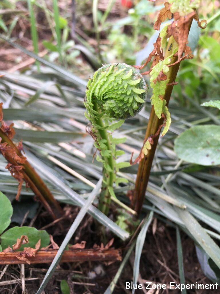 おととい新芽を確認したコゴミですが、今日はいかにもコゴミという姿が見られました。しかし、さすがに収穫するわけにはいきません。来年には食べられるように、暑い夏を乗り切ってもらわなければなりません。