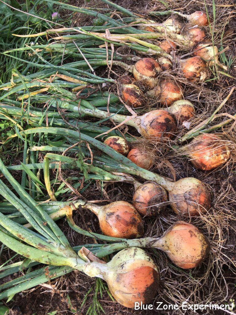 葉っぱが倒れたタマネギを雨の前に収穫しました。