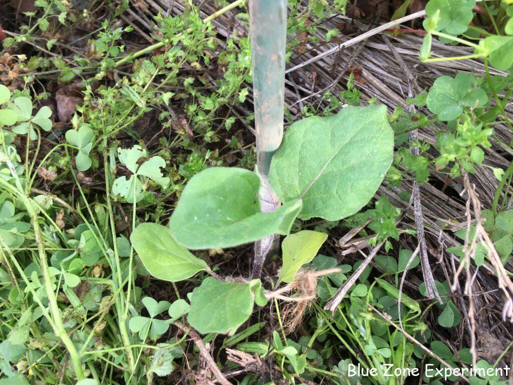 まだ残っていたアップルグリーンナス二株と熊本ナス二株を定植しました。熊本ナスは、鉢上げの段階でいただいたのですが、根を傷めてしまったようで、なかなか活着せず、その後ハダニの被害もあり、なかなか成長しませんでした。今もまだ元気とは言えない苗ですが、もしかすると畑に出した方が元気になるかもしれないと思い、定植することにしました。ナスは全般的に調子がよくないので、どれか一株でもちゃんと育ってほしいものです。