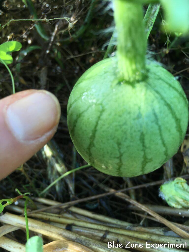 ライ麦は、ちょうど収穫のタイミングだったようなので、穂の部分を切って収穫しました。茎の部分も一部刈って、スイカの下に敷きました。