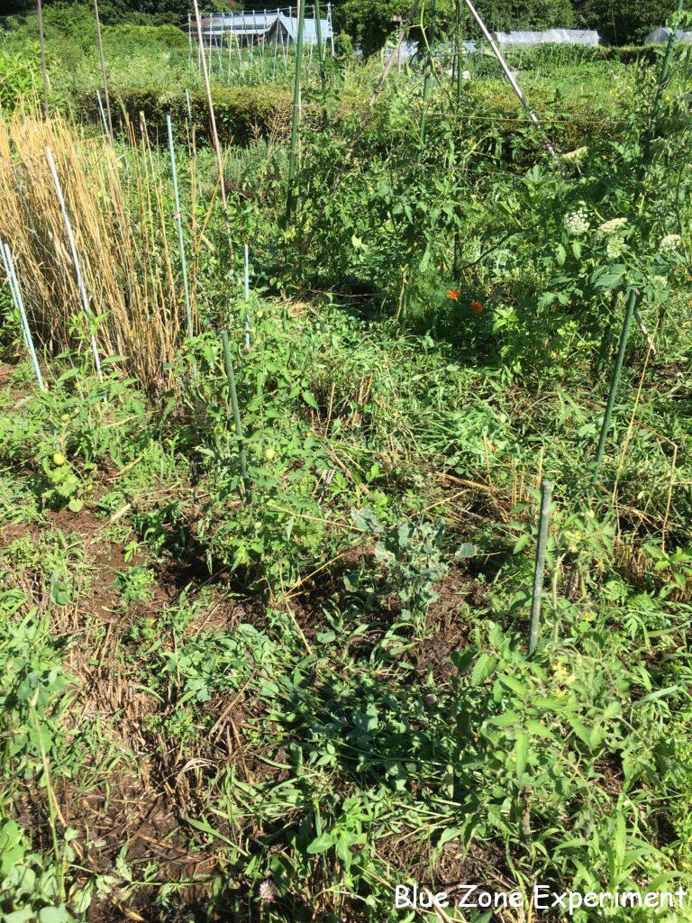 二週間ぶりの畑です。暑くなりすぎる前に二つの畑をなんとかしたいので、朝 4 時前に起き、明るくなる頃に畑に到着するように家を出ました。草に埋め尽くされた畑を目にし、一人でこれを何とかするのかと思うと、しばし呆然としてしまいました。しかし、いくら頑張っても短時間で作業を完了するのは無理な話です。無理せずできる範囲でやろうと開き直って、二週間ぶりの作業に取り掛かりました。