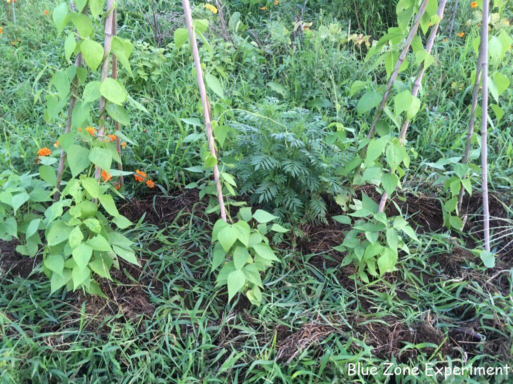 今日も少しだけ種をまきました。トマトの支柱の下にルッコラとレッドロシアンケール、白インゲンの支柱の南側には宮重大根の種をまきました。空いている場所の有効利用です。