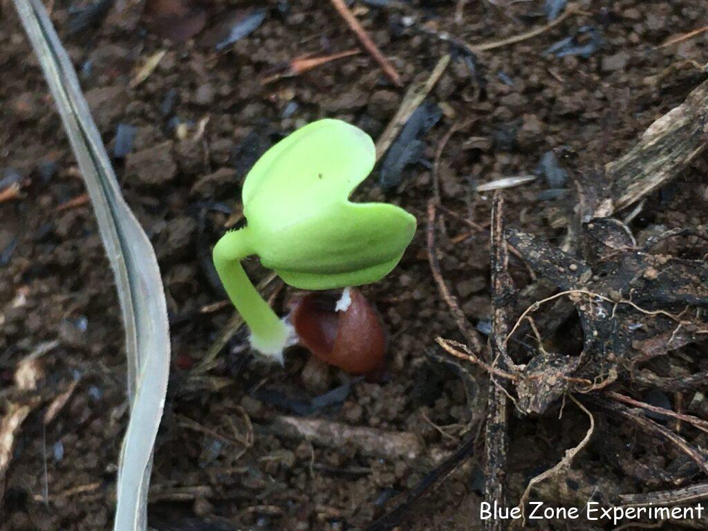 台風の影響で雨がたっぷり降ったせいか、二日前にまいた種が早くも発芽しています。発芽したのは、ケール、春菊、宮重大根、源助大根です。レタスは、はっきり確認できませんでした。芽かと思われるものもありましたが、雑草かもしれません。発芽の遅いニンジンとチャードは、二週間後のお楽しみです。