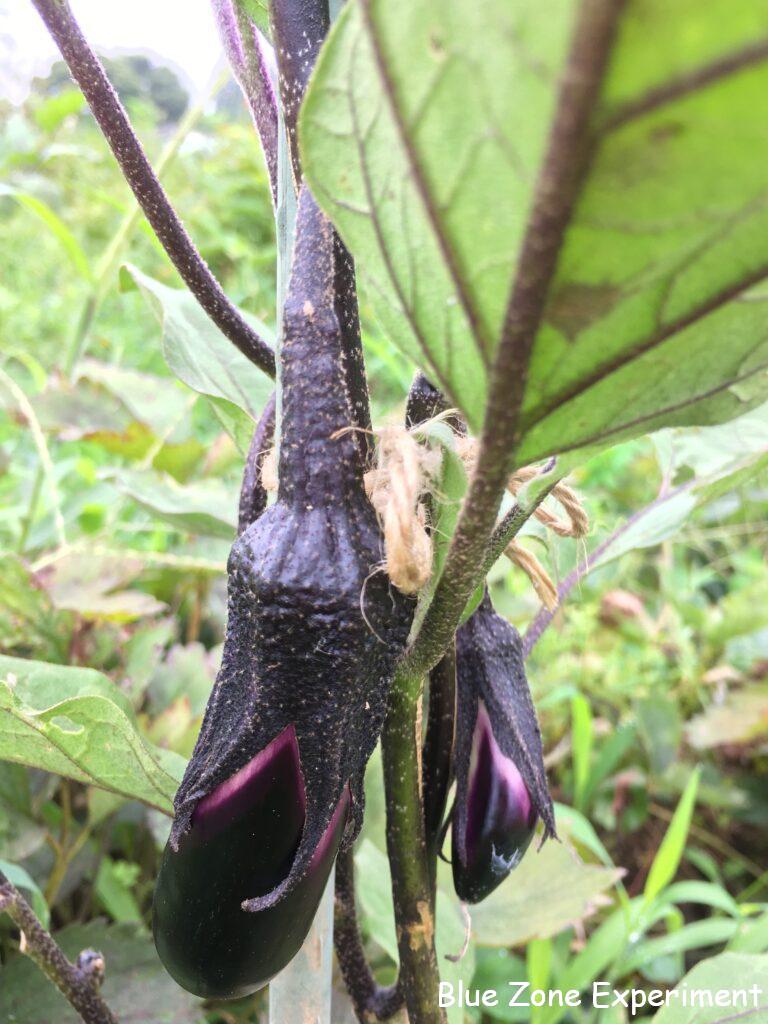 パレルモは、二株が特に順調に育っていて、たくさんの大きな実がぶら下がっています。栽培期間が長いので、その間虫に食われないことを祈ります。二週間後には色がついてきているでしょうか? ナスも少しずつ実ってきましたが、今小さいものは、二週間後にはどうなっているのでしょうか? 楽しみです。7 月 30 日に種をまいたキュウリは、一株だけ育っています。収穫に至るでしょうか? 白インゲンは支柱のてっぺんに到達しました。葉っぱも美しいです。一昨日草の中から救出したセージは、一気に元気を取り戻しました。ヨレヨレだった方の株は、まだヨレヨレのままですが。