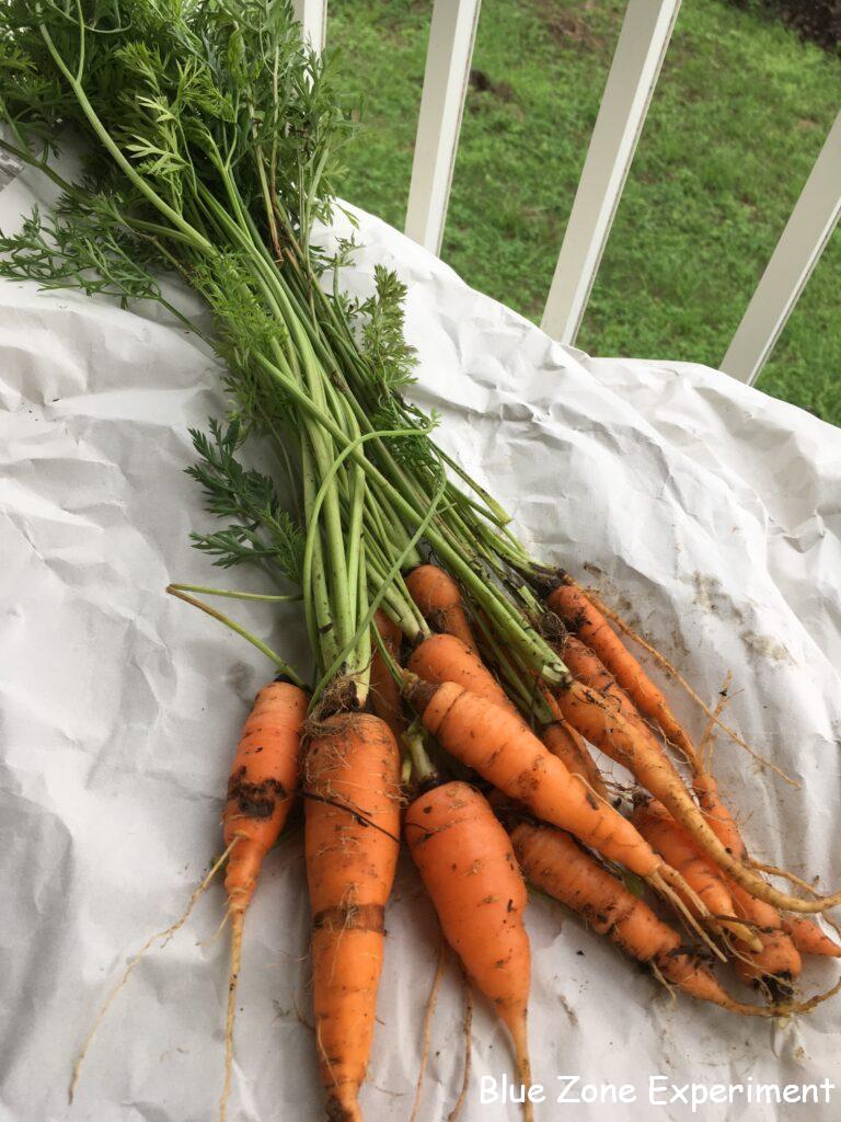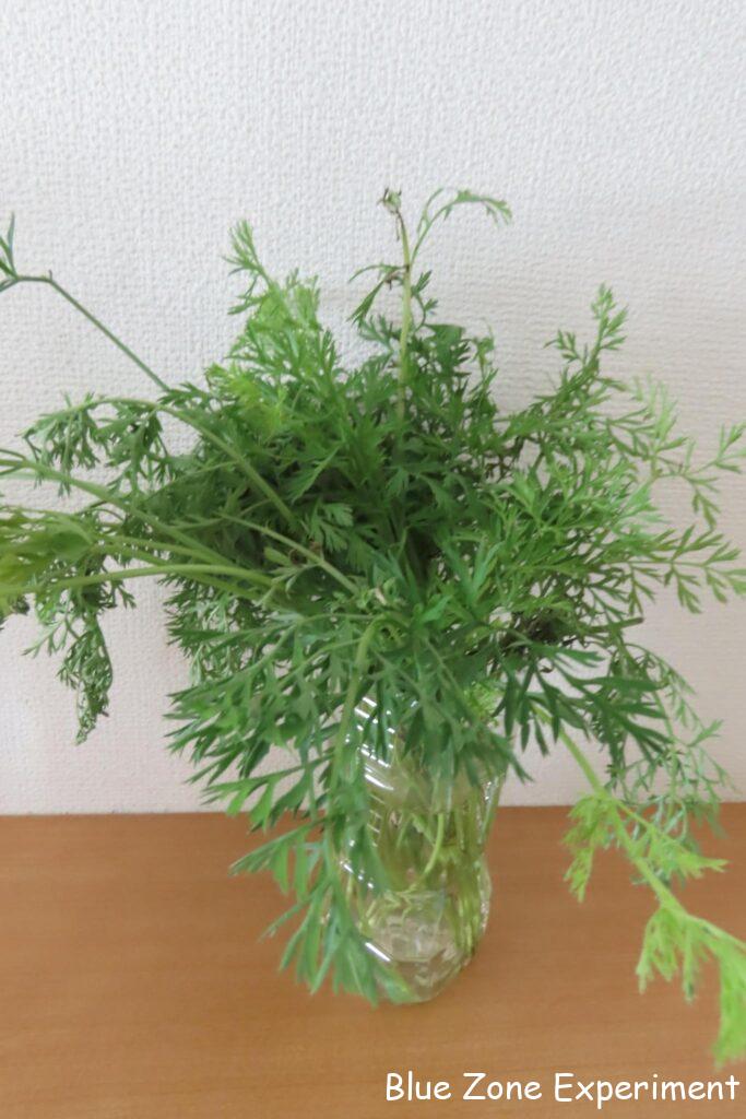 今日の一番の目的は、キアゲハの幼虫の餌となるニンジンの葉っぱを収穫することです。