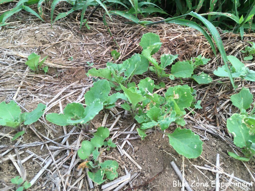 約二週間前に種をまいた種の発芽状況をチェックしてみると、乾燥しているせいか、ニンジンはまだあまり出揃っていませんでした。アブラナ科はおおむね順調に発芽はしていますが、いつも通り虫食いの被害がはじまっています。レタスやチャードも、ニンジン同様水分不足なのか、あまり発芽していません。春菊はまずまずです。来週は雨が予想されているので、発芽が悪いものは、雨の前にまき直そうと思います。
