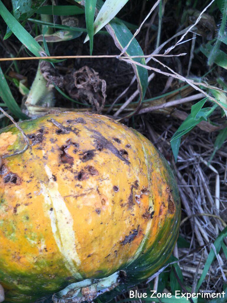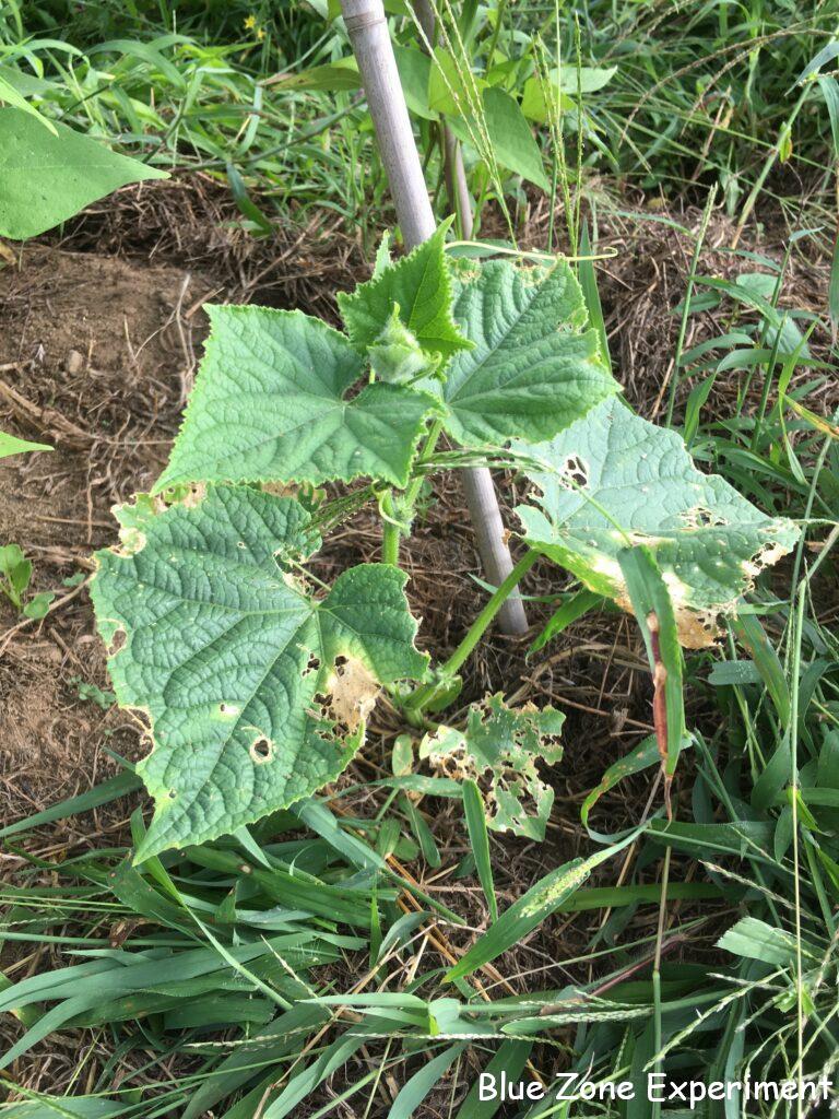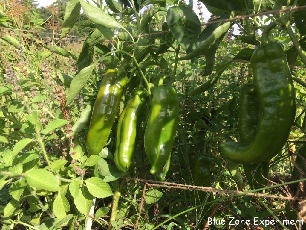 土のせいなのか、技術不足のせいなのか、この畑ではなぜかカボチャがうまくできません。今年は大きくなってきたと喜んでいたのもつかの間、実を裏返してみると、虫に食われてたくさん穴が開いています。別の種類のカボチャも2週間前は順調そうだったのに、今日見たら腐ってきていました。ナスは控えめながら実をつけています。トウガラシ類は、去年同様、食べきれないほどの実がなります。キュウリは虫に食われながらも、少し大きくなってきました。パースニップは、枯れている葉もあるものの元気そうです。前回草から救ったセージは、徒長してヨレヨレだった方の株も復活して新芽が出ています。白インゲン豆は、よく茂って、支柱に絡まったその姿は、なかなかの存在感です。