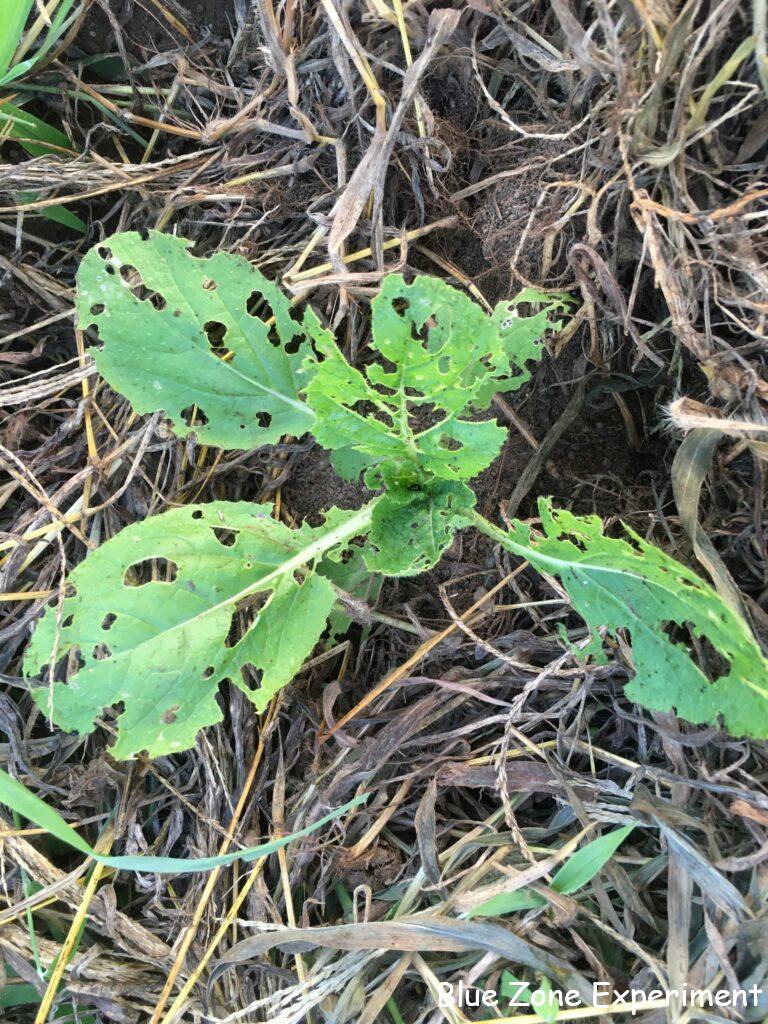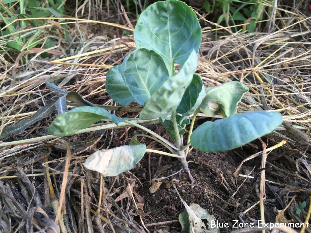 4 日前の 9 月 9 日に定植した芽キャベツと白菜の購入苗ですが、定植翌日にチェックしたときには、白菜がすでに虫に食われていました。その後、どうなっているでしょうか?