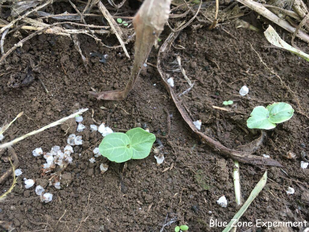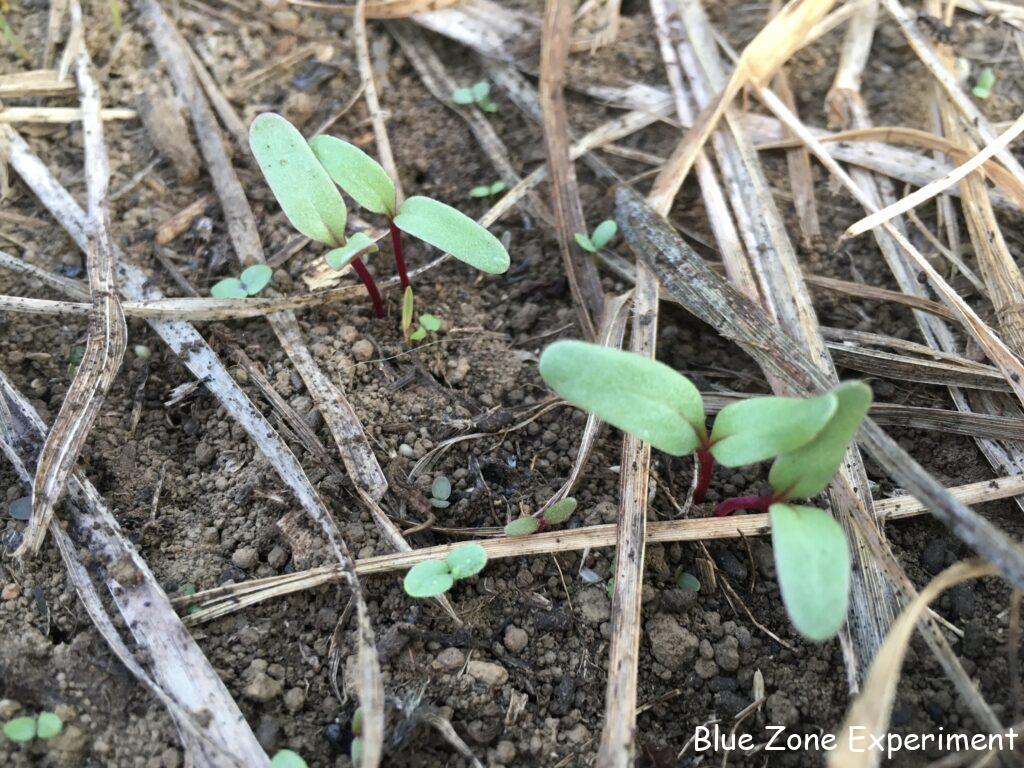雨が少ないため、発芽が遅れているものもありますが、ビーツや立葵は無事発芽していました。