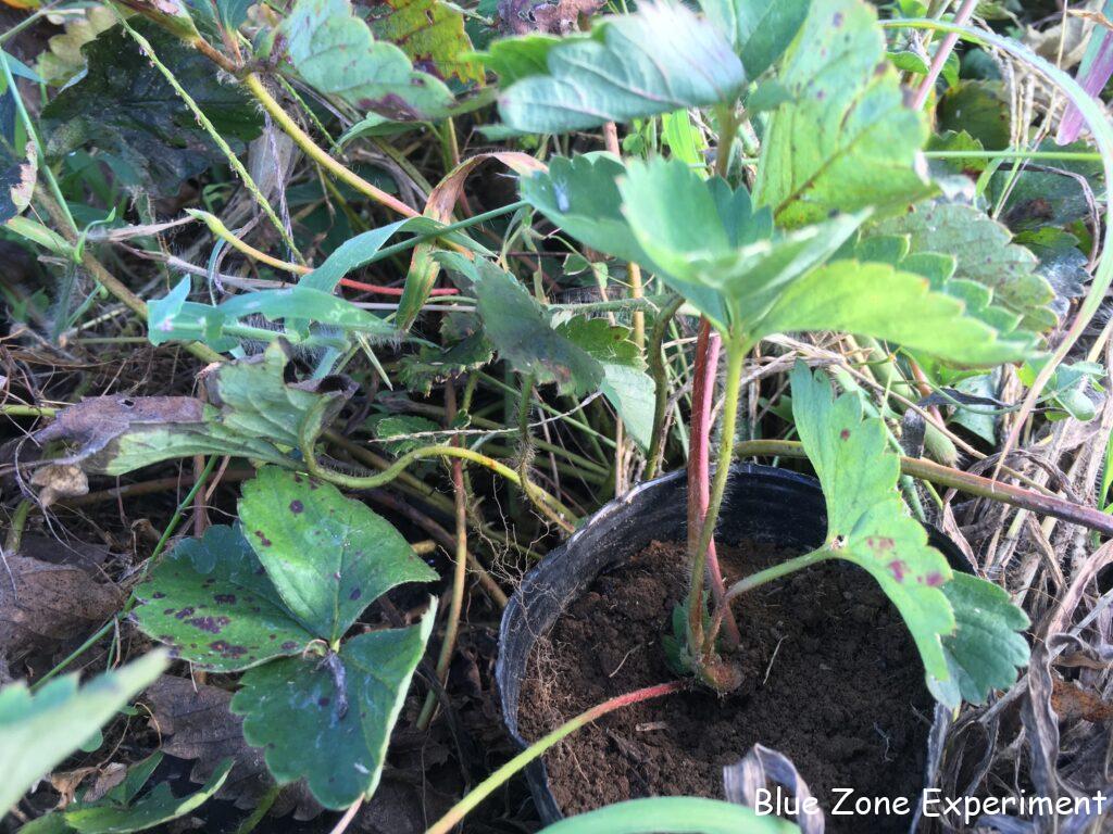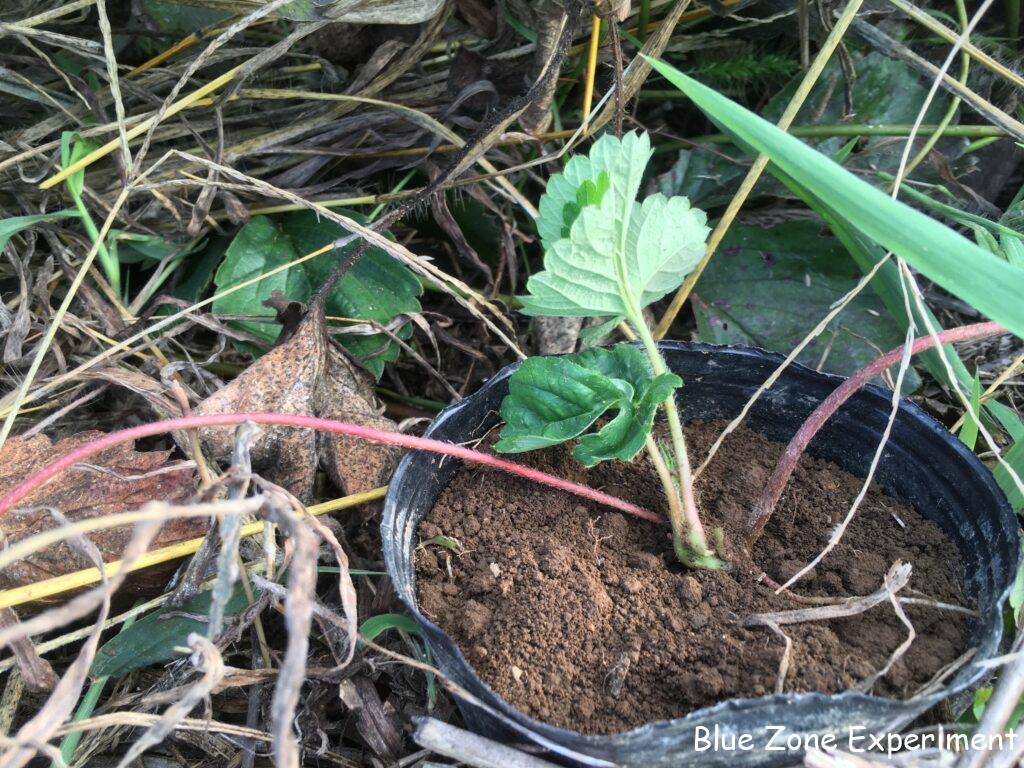 イチゴの畝がごちゃごちゃになってきましたが、きっと自然に任せるのが一番だと思うので、そのままにしようと思っています。ただ、別の畑にも何株か植えたいので、ポリポットに入れた土にランナーを根付かせて苗を作ることにしました。どの親株の実付きがよかったのか、全く注意を払っていなかったので、選定は適当です。時期が遅いので、定植時期までにランナーが根付いてくれるのかは疑問ですが、実験のつもりでやってみます。