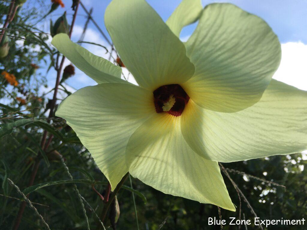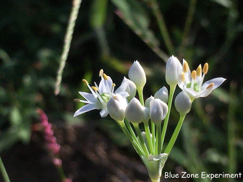 花オクラはまだ咲いています。たくさん咲くので、もしかしたら一回食べてみたらいいのかとも思いますが、美しすぎて採れません。花が終わったあとの実は、オクラよりも小さい感じです。越冬し、厳しい夏も草の中で何とか生き残ったニラは、美しい花を咲かせています。株が弱らないように花は早く摘み取ったほうがいいようですが、あまりにもかわいらしい花なので、摘み取りがたいです。
