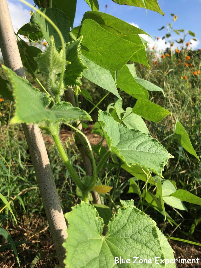 オレンジ色のミニパプリカの苗を一つ植えていたのですが、全然成長せず、やっと小さな実が二つ付きました。でも、虫食いもあり状態はよくないので、種採り用にしようと思います。キュウリは、巻きひげが支柱に絡みつき出し、ようやく勢いが出てきた感じです。種取り用の実だけでもついてくれるといいのですが。