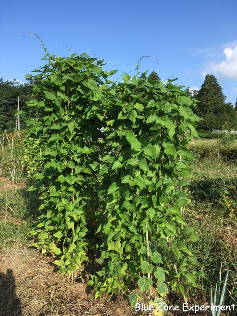 7 月 17 日に種をまいた白インゲンは、今畑の中で最も勢いのある作物です。播種から2 か月弱、今日が初収穫です! 暑いと花が落ちて莢が付きにくいと聞くので心配していましたが、ちゃんと小さな莢がたくさんできているので、今後も期待できます。一部はさやインゲンとして、残りは乾燥させて白インゲン豆として食べたいと思っています。それにしても、土に種を埋めて 2 か月間ほったらかしていただけなのに、こんなに大きく成長して実をつけるなんて、自然の偉大さを感じずにいられません。