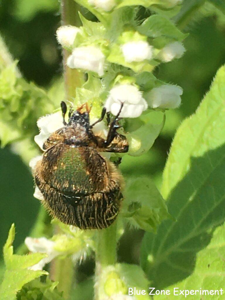 シソの花が満開で、いろいろな虫を呼びよせています。写真のハナムグリのほかにも、ミツバチやスズメバチ、その他名前のわからない虫もいろいろ来ていました。トンボもたくさん飛んでいます。トンボは蚊を食べてくれるはずですが、最近蚊が多くて参っています。早朝は蚊が活発で刺されない日はありません。蚊取り線香のことを忘れていたのを急に思い出し、今年初めて使ってみましたが、やはり刺されました。