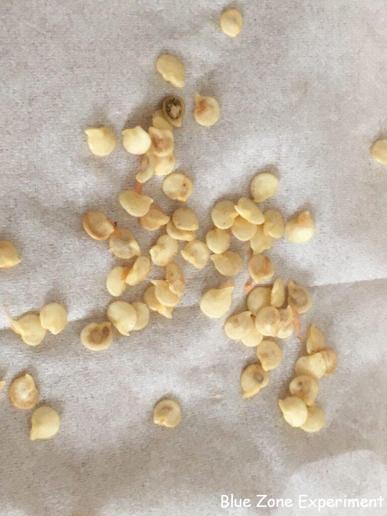 真っ赤になった伏見甘長トウガラシがあったので、種を採りました。畑で採種したコリアンダー(パクチーの種)と一緒にベランダで乾燥中。写真にはありませんが、最後の一個の加工用トマトを収穫したので、それも種を採りました。
