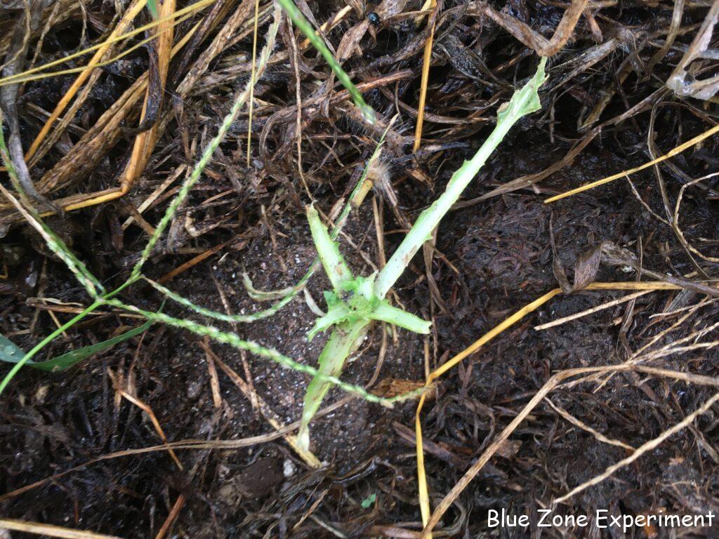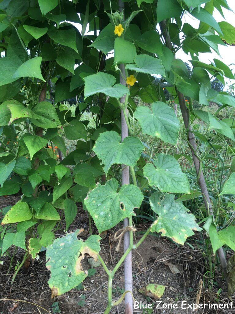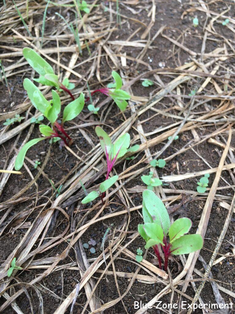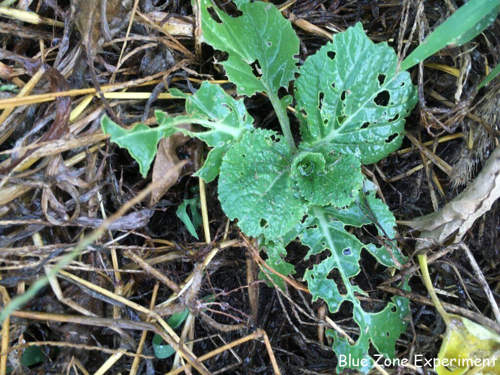 いつ種をまいたか忘れてしまったのですが、キュウリが少しずつ成長しています。下の方の葉っぱはすでに病気でボロボロですが、新しい葉っぱはきれいで、花も咲いています。白インゲンは、二か所で育てていますが、一か所は調子が悪くなってきました。カメムシがたくさんついているうえに、茎には虫が入った形跡があります。莢も形の悪いものが目立ちます。9 月 9 日定植の芽キャベツは、同日定植の白菜と比べると悪くない感じですが、少し虫食いが目立ってきました。ビーツは発芽していますが、今この大きさでは、寒くなるまでに大きくなるかどうかは不明です。